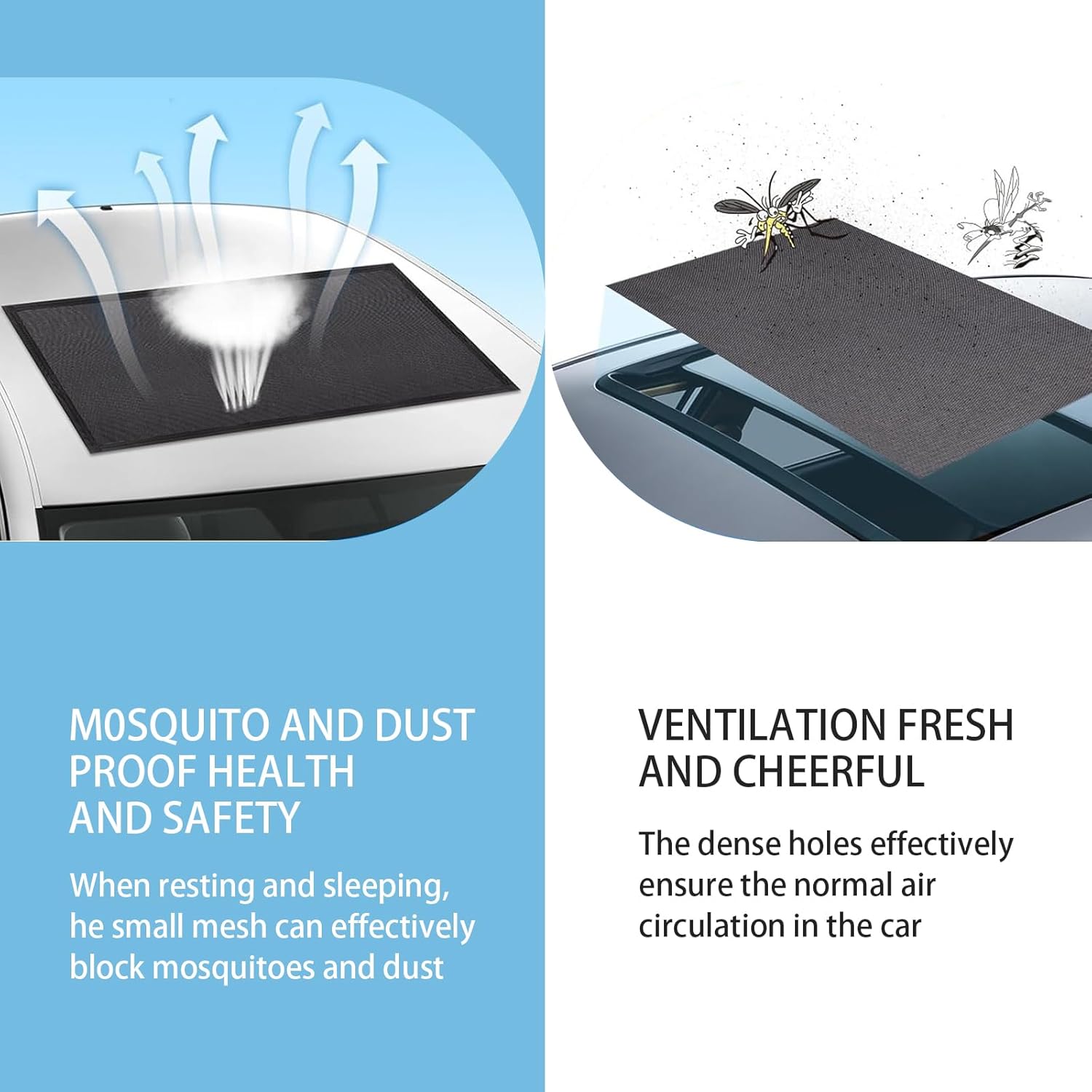 Car Sunroof Breathable Mesh, Foldable Camping Accessories, No Tool Installation, 39×25.5In Universal Automotive Sunroof Sun Protection (Black)