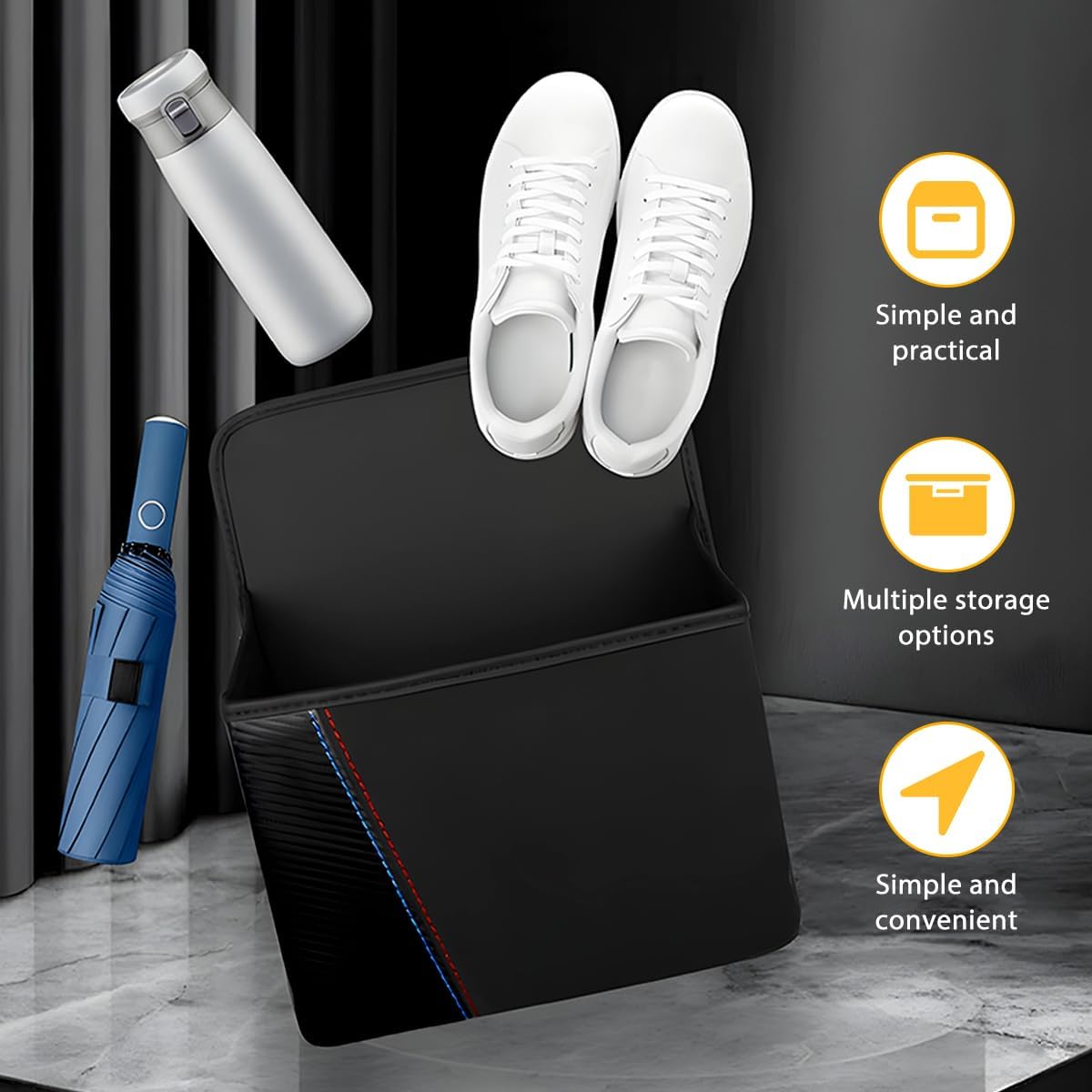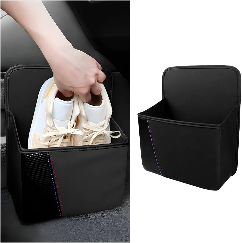 Practical Function: This car trash can has a large capacity, not easy to collapse, easy to access, can meet your multiple storage needs. It can be used as a storage bucket to store shoes, umbrellas, water cups and other scattered items to keep the car organized, and it can also be used as a garbage can to effectively store garbage in the car and solve the problem of clutter in the car.