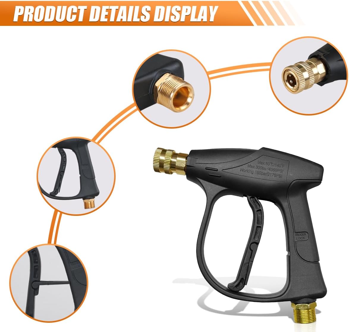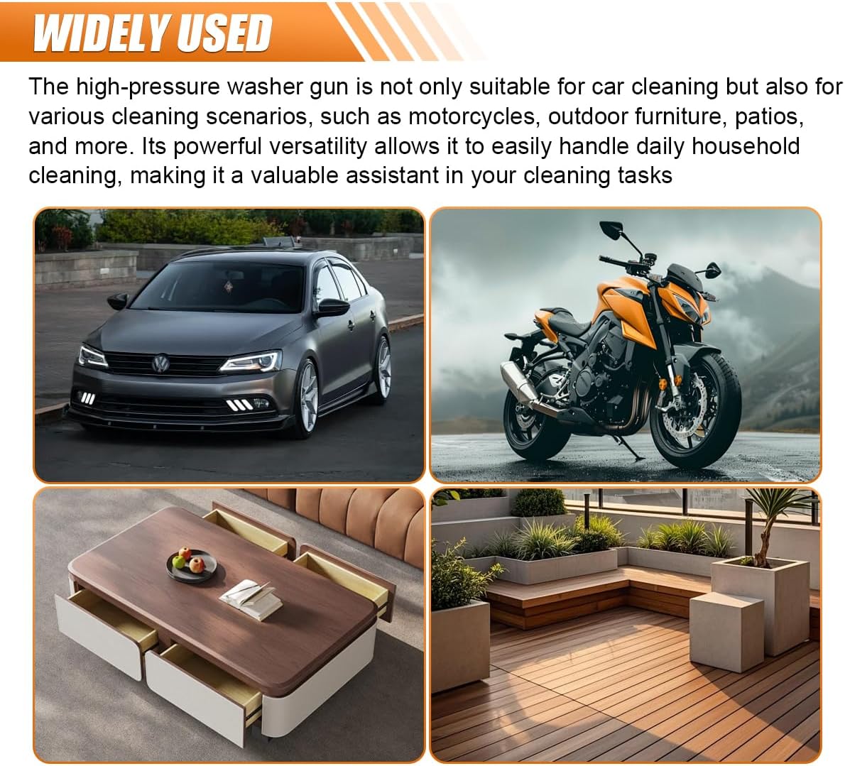 【Wide Applications】:This high-pressure cleaning gun is not only suitable for car washing but can also be used to clean driveway surfaces, windows, and exterior walls, meeting both household daily use and professional maintenance needs. Note: This cleaning gun is not suitable for garden hoses.