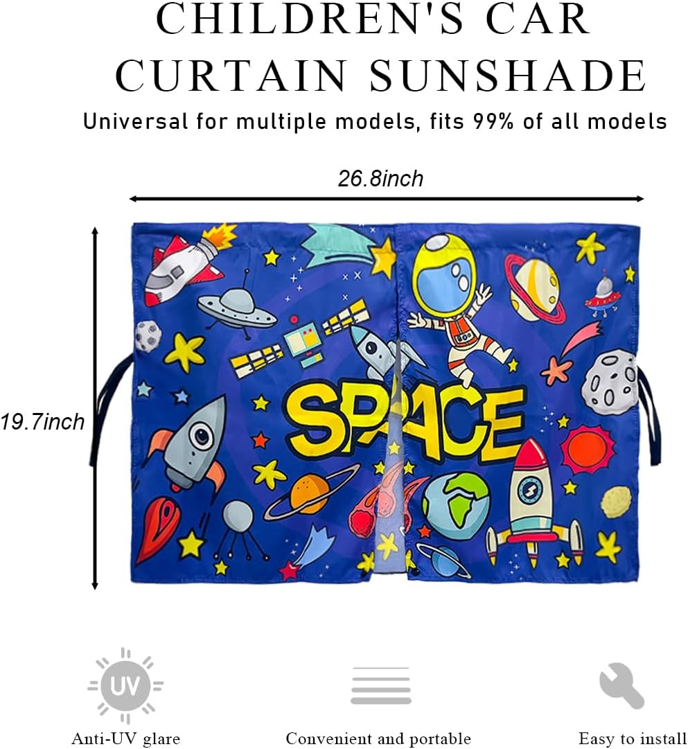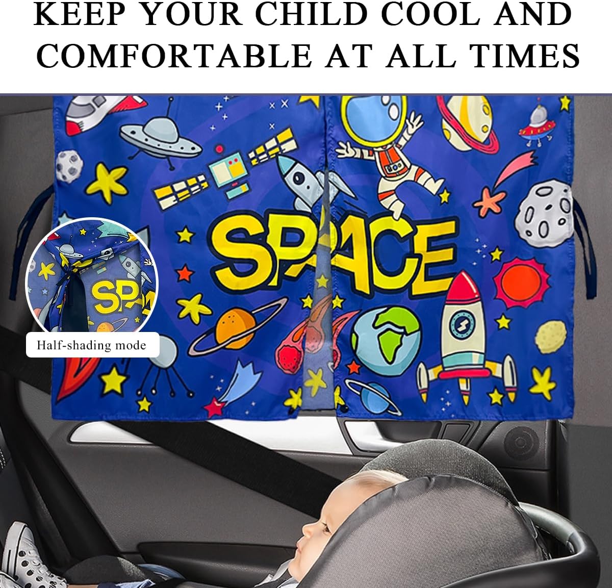 Car Window Shades, Magnetic Double Layer Side Window Sun Shade for Baby and Kids, Car Curtains for Sun Glare and UV Protection, Privacy Protection Auto Window Screen (Space Exploration)