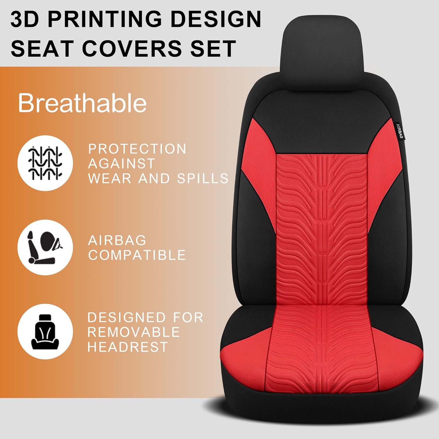 【SPORTY DESIGN】Featuring a striking tire tread pattern, these seat covers instantly elevate the sporty aesthetic of your vehicle. The 3D embossed design adds depth and dimension. This product offers breathability and comfort while being easily washable for repeated use.