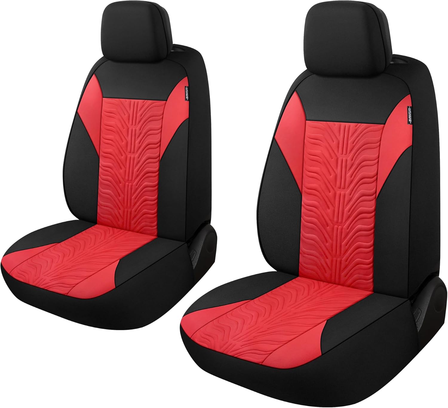 CAROMOP Car Seat Covers Front Set, Washable and Breathable Premium Cloth Seat Covers for Cars, Universal Fit for Most Car Interior Covers-Sedan Truck SUV(Black/Red)