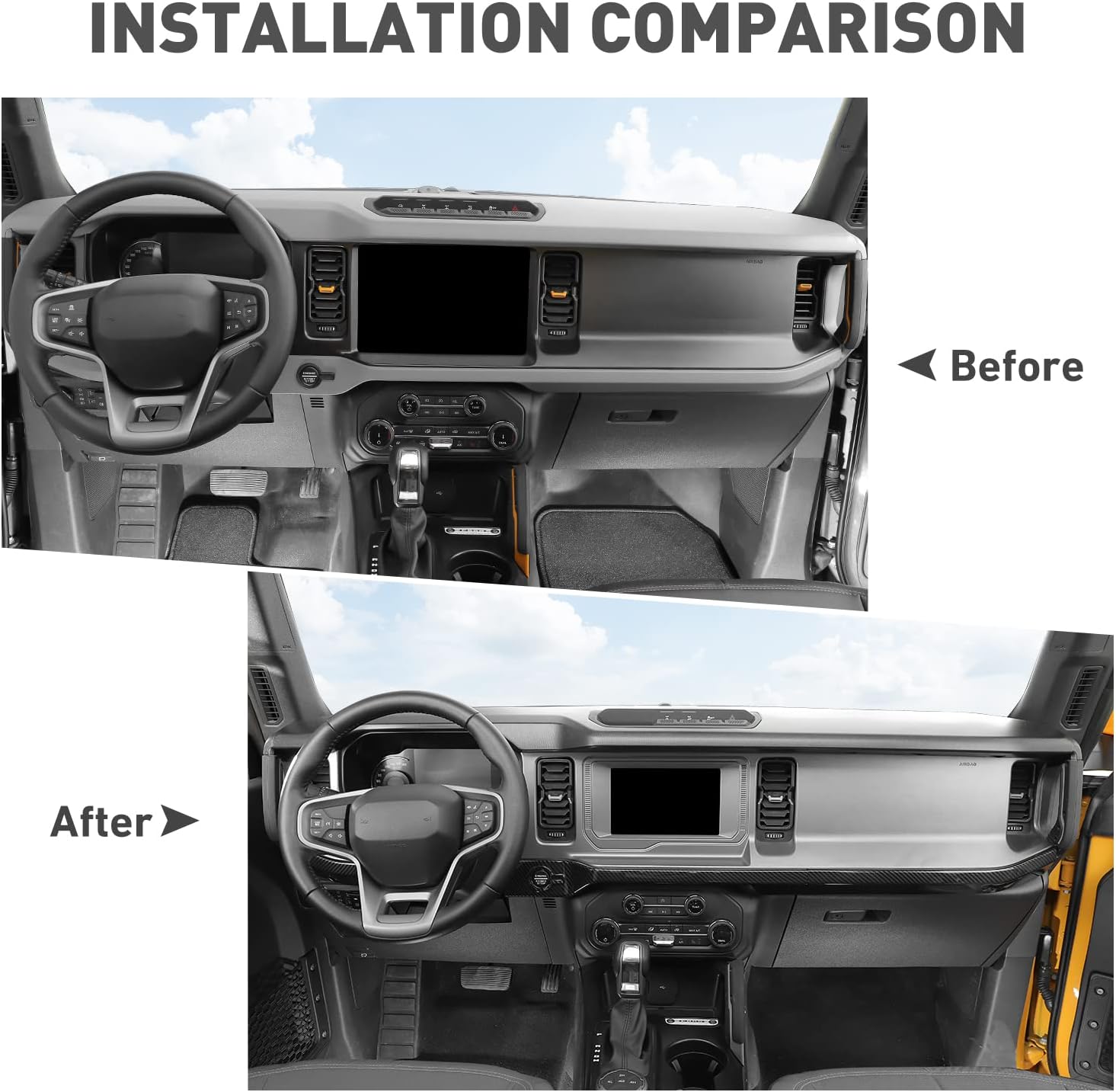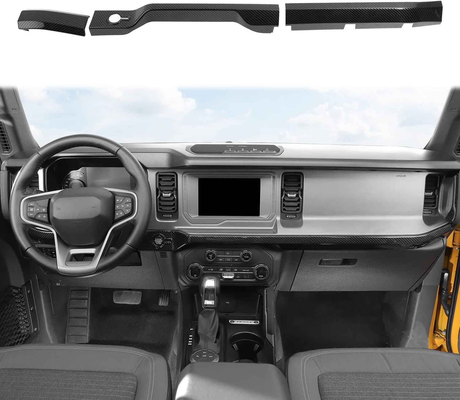 Center Console Dash Interior Decoration Panel Cover Trim Carbon Fiber Dash Dashboard Panel Strips Trim Cover fit for Ford Bronco 4Doors 2021 2022 2023 2024 Interior Accessories