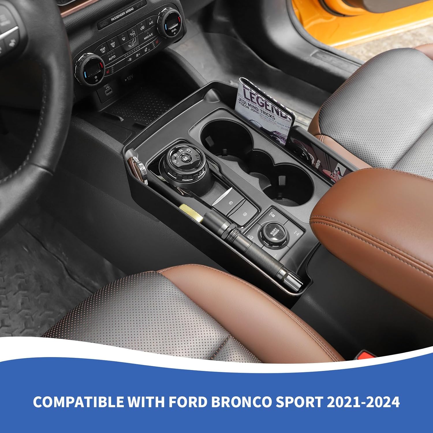 FITMENT–Center console gear shifter storage tray organizer compatible with Ford Bronco Sport 2021 2022 2023 2024.