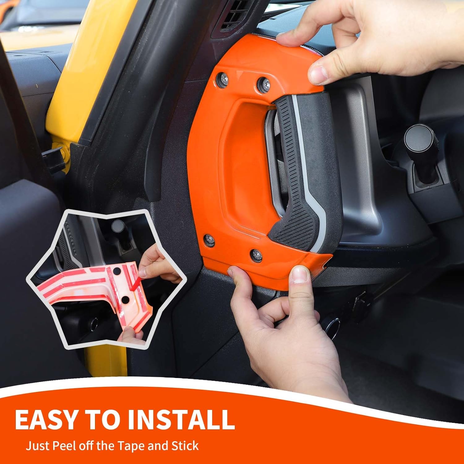 EASY TO INSTALL–Tear off the double-sided tape on the back of the dashboard side handle cover and paste it to the corresponding position.