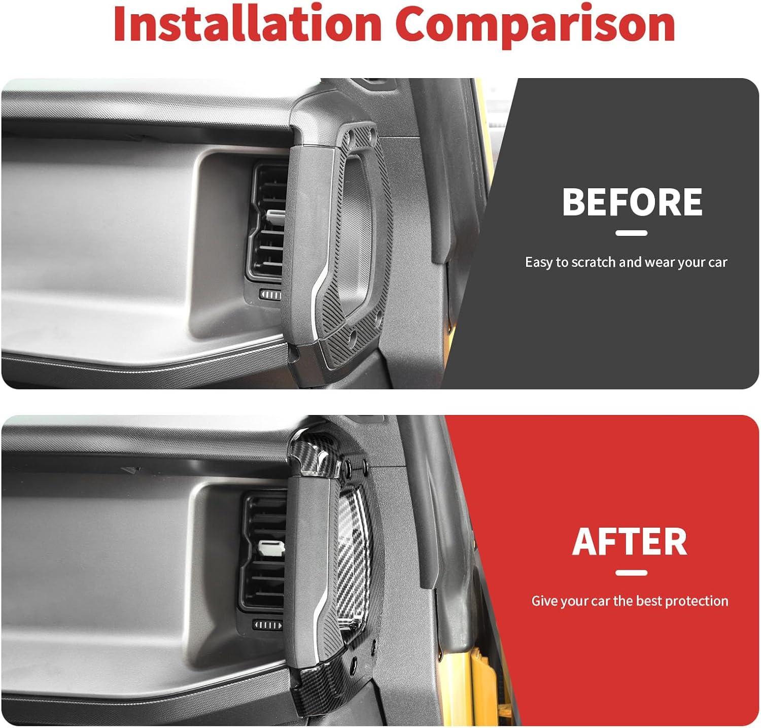 Center Console Side Grab Handle Cover Trim Compatible with Ford Bronco 2021-2024 Interior Accessories(Carbon Fiber)