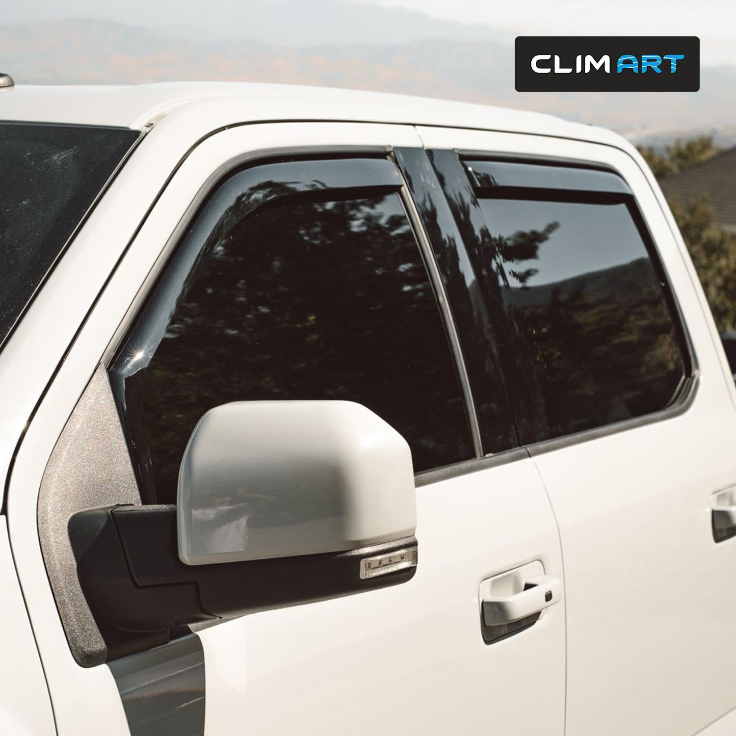 MAKE CAR RIDES MORE ENJOYABLE — Open the windows and enjoy the breeze as you cruise around, without worrying about the noisy wind, chilly snow, annoying rain sprays/splashes, or the blazing sunshine with CLIM ART side window deflectors. Drive in STYLE & COMFORT with our truck accessories – car window shields!