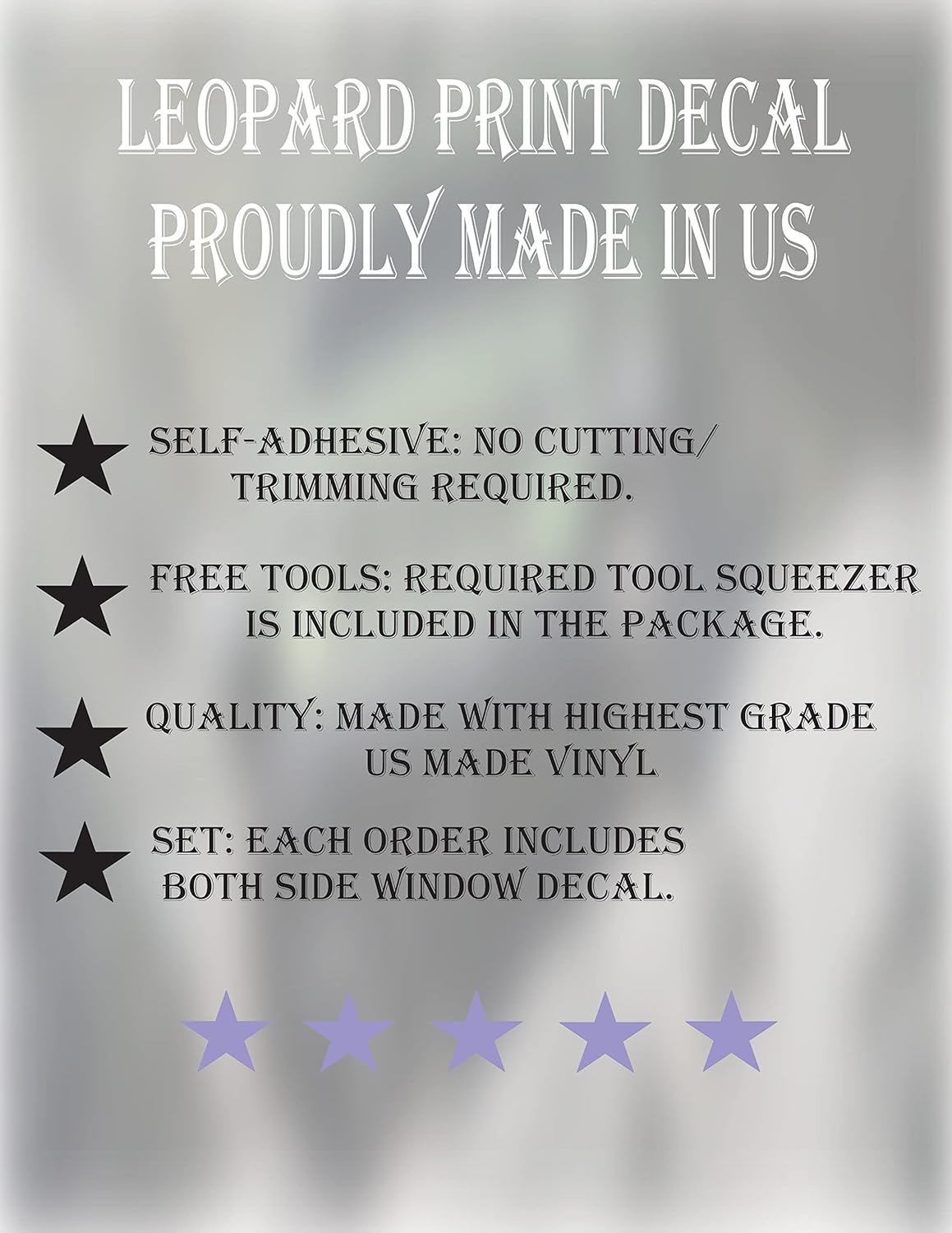 Comprehensive Package – Both side (Driver side and Passenger side) Cheetah Print window decal with a free decal squeegee tool.