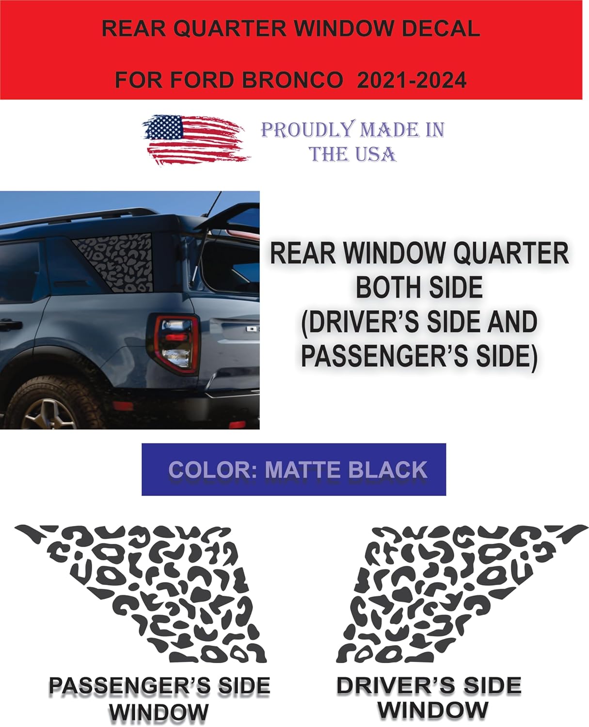 Compatible with 2021-2024 Ford Bronco Sport | Precut Leopard Cheetah Print Window Decals | Both Side | Proudly Made in The US | Matte Black