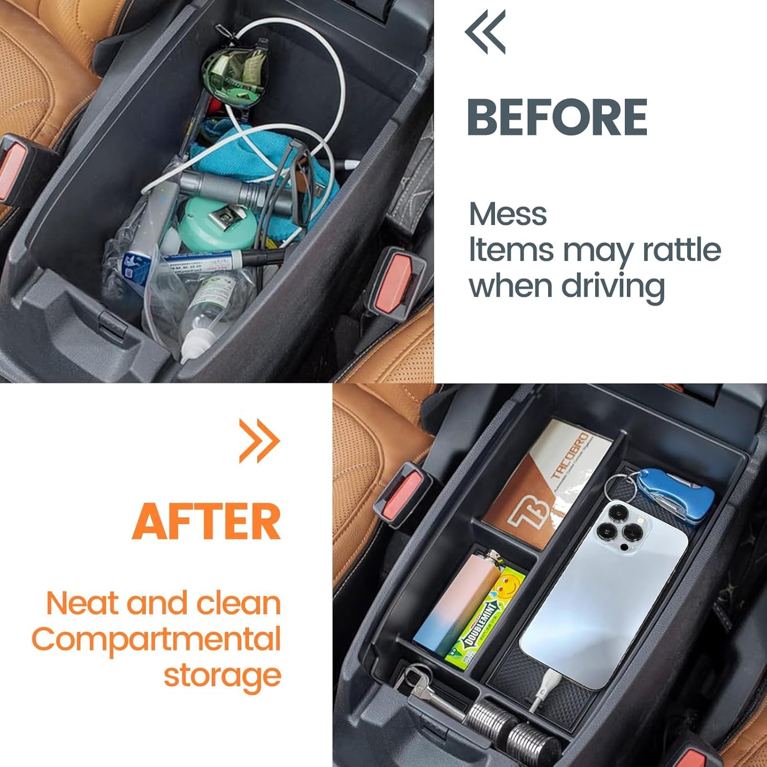 Compatible with 2PACK 2021-2024 Ford Bronco Sport Center Console Organizer, For Bronco Sport Center Console Tray Insert, Console Armrest Storage Box Accessories Bronco Sport 2021-2024