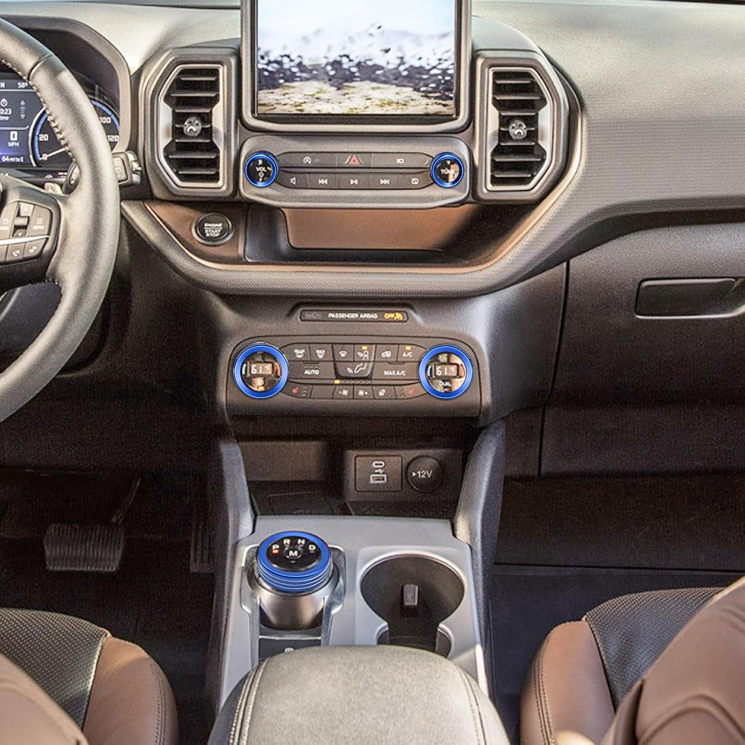 Compatible with Ford Bronco Sport 2021-2024 Accessories Center Console Air Conditioner Switch Headlight Knob Cover Aluminium Alloy Wheel Drive Trailer Gear Switch knob Set 7Pcs Blue