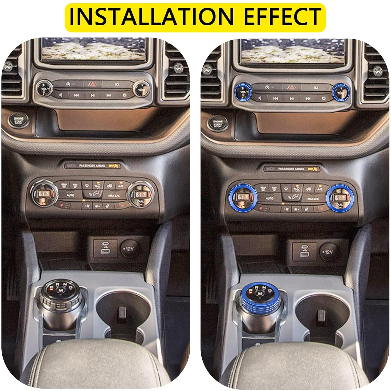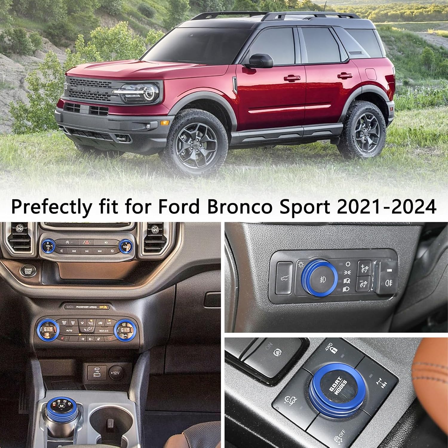 Compatible with Ford Bronco Sport 2021-2024 Accessories Center Console Air Conditioner Switch Headlight Knob Cover Aluminium Alloy Wheel Drive Trailer Gear Switch knob Set 7Pcs Blue