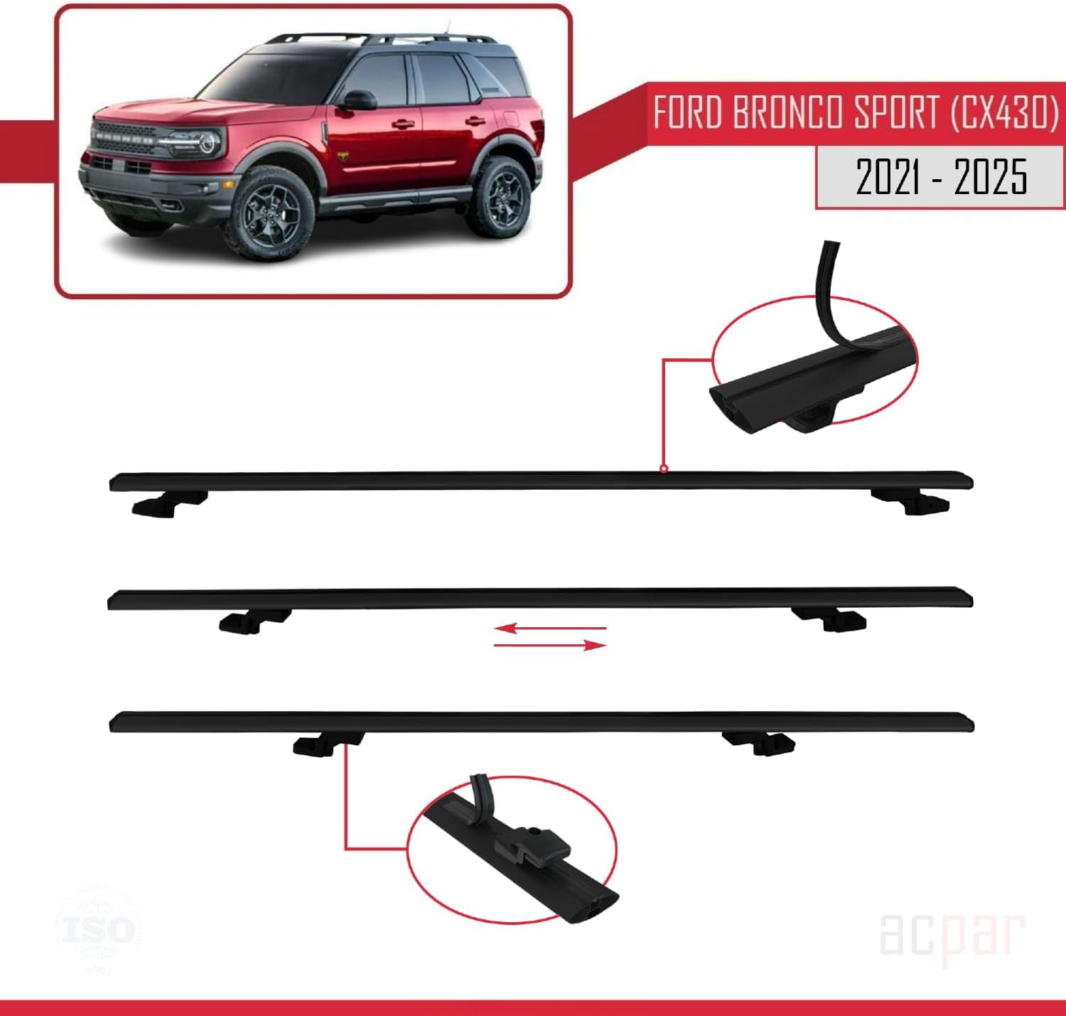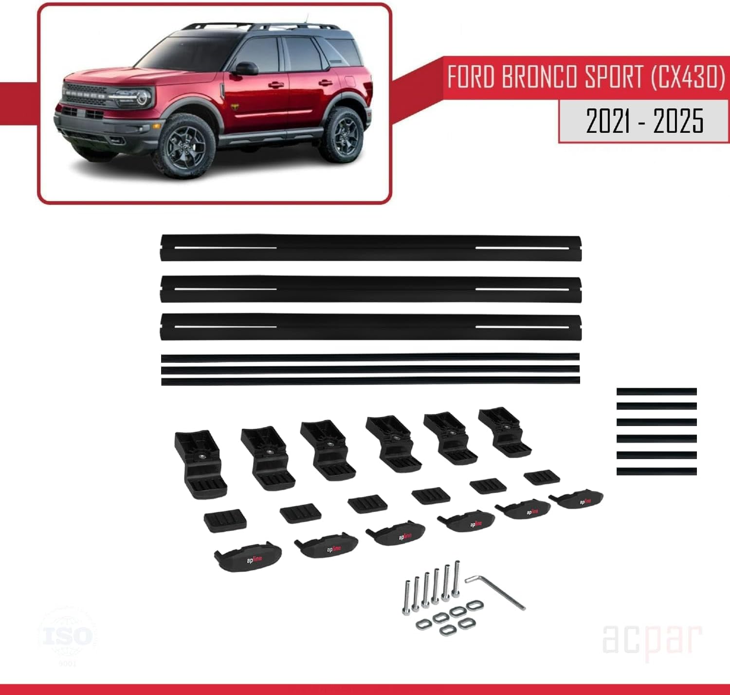 Compatible with Ford Bronco Sport (CX430) 2021-2025 Basic Model Car Roof Rack Cross Bar Grey Aluminium 3 Bars