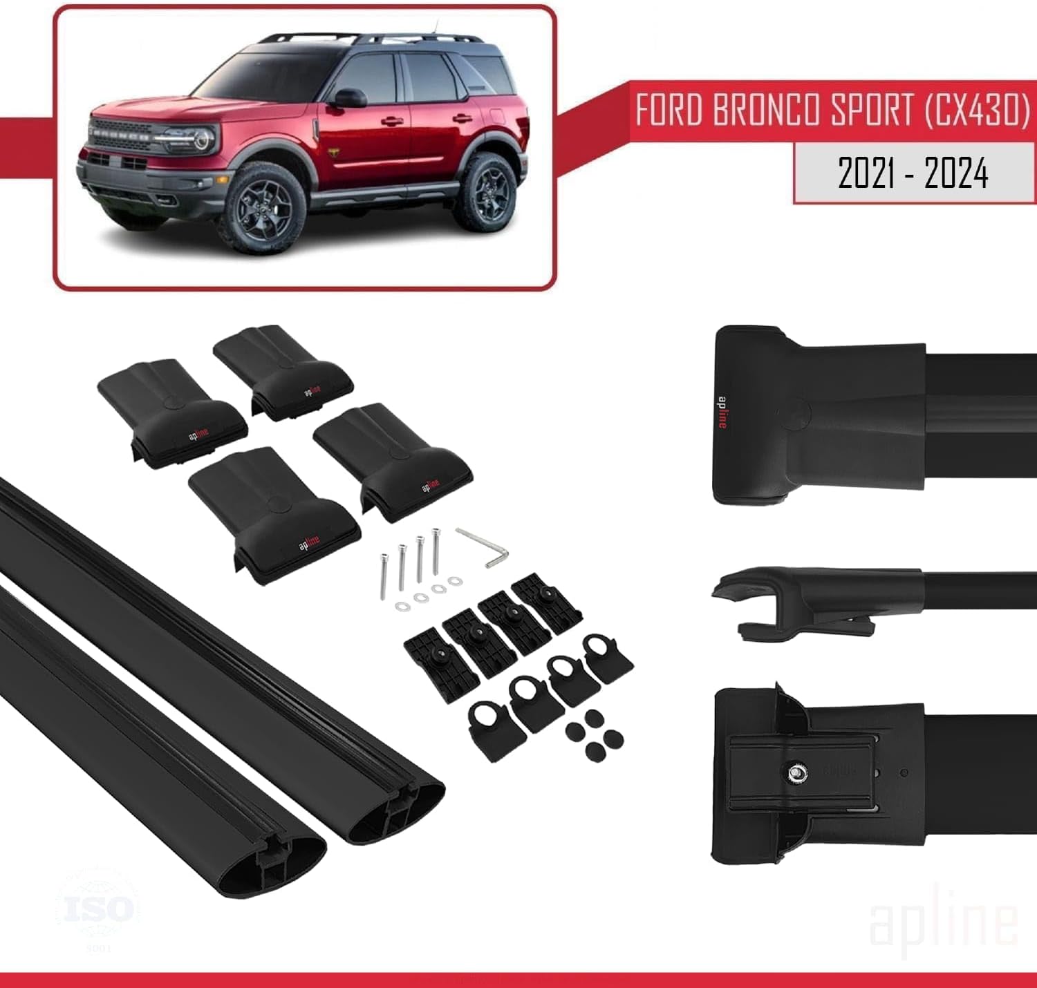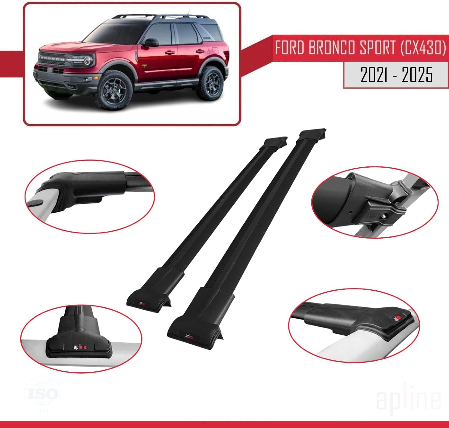 Compatible with Ford Bronco Sport (CX430) 2021-2025 Fly Model Car Roof Rack Cross Bar Black Aluminium 2 Bars