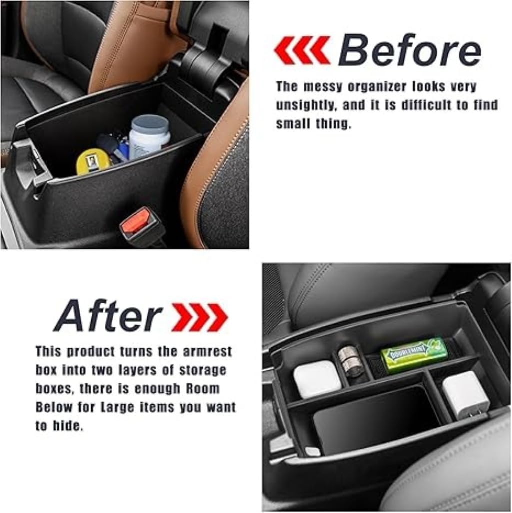 Premium Material: The center console organizer storage box is made of ABS, heat-resistance, and the flocking interior is scratch-proof, robust, and long-lasting; It keeps these items silent while driving