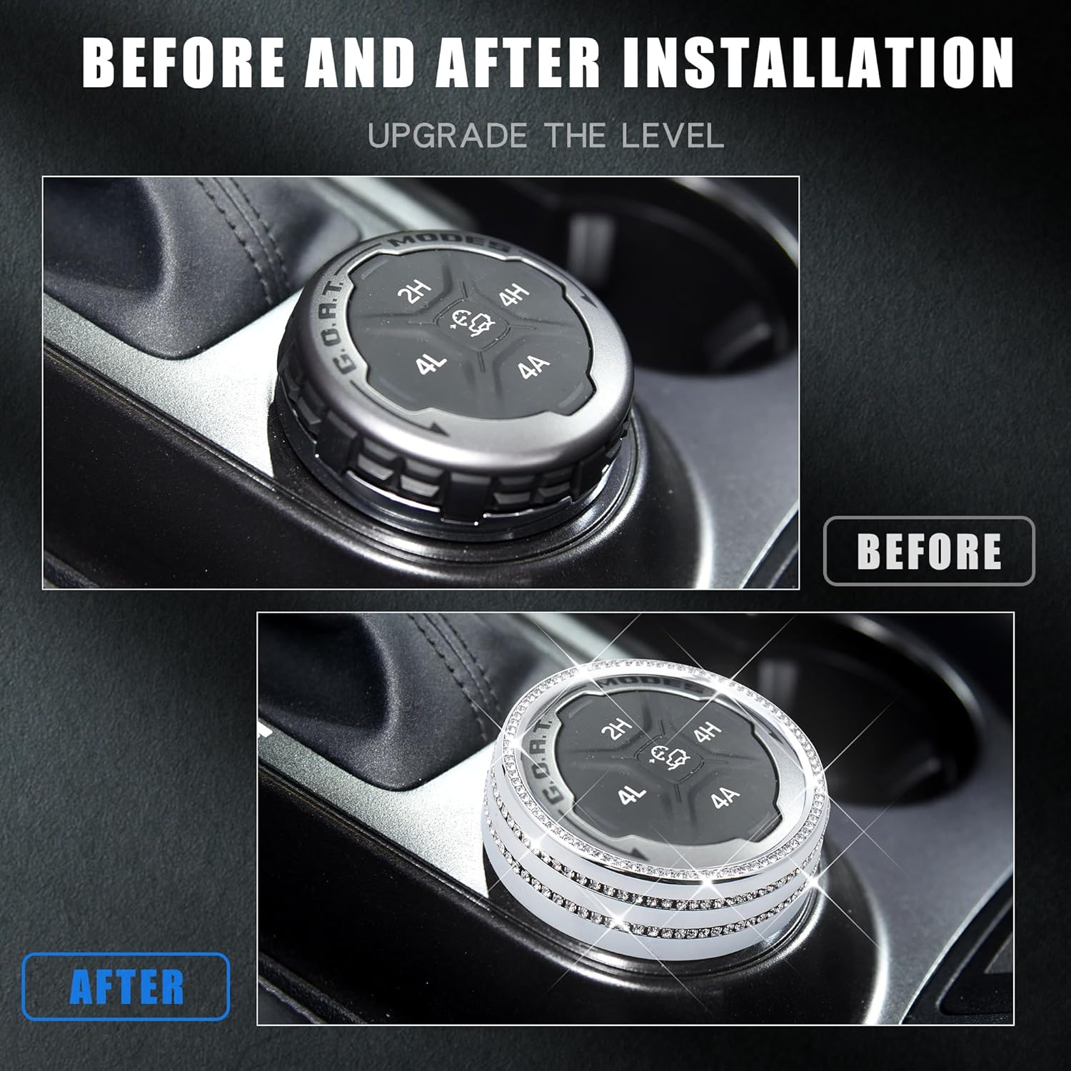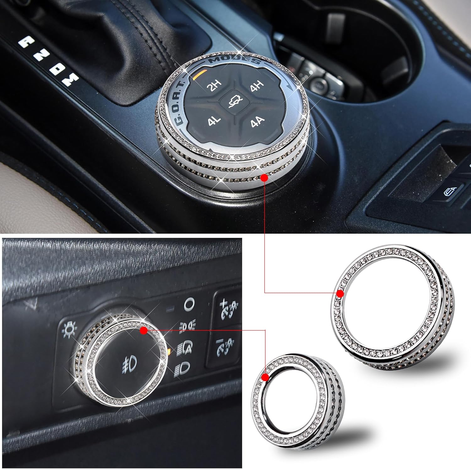 CONGCONG Bling 4WD Wheel Drive Trailer Gear Switch Knob Cover and Side Light Switch Knob Cover Crystal Accessories 2Pcs Fit Ford Bronco 2021-2023(Not for Bronco Sport)