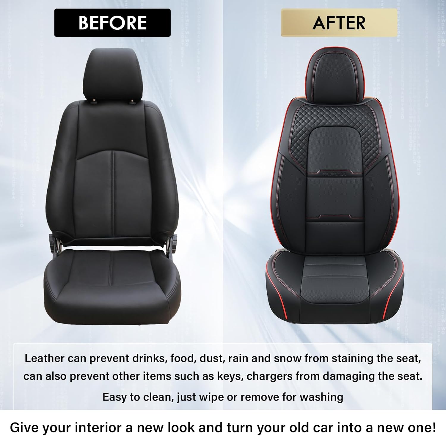 High Quality: These luxury seat covers are made from porous Nappa leather, making them smooth, breathable and gentle to the touch. They are filled with high elastic density foam padding to enhance the comfort of any vehicle cabin. Compared to PVC leather, Napa leather has realistic texture, no smell, soft touch and will not fade or tear even after long use. The Nappa leather seat covers can greatly enhance the luxury and beauty of the car