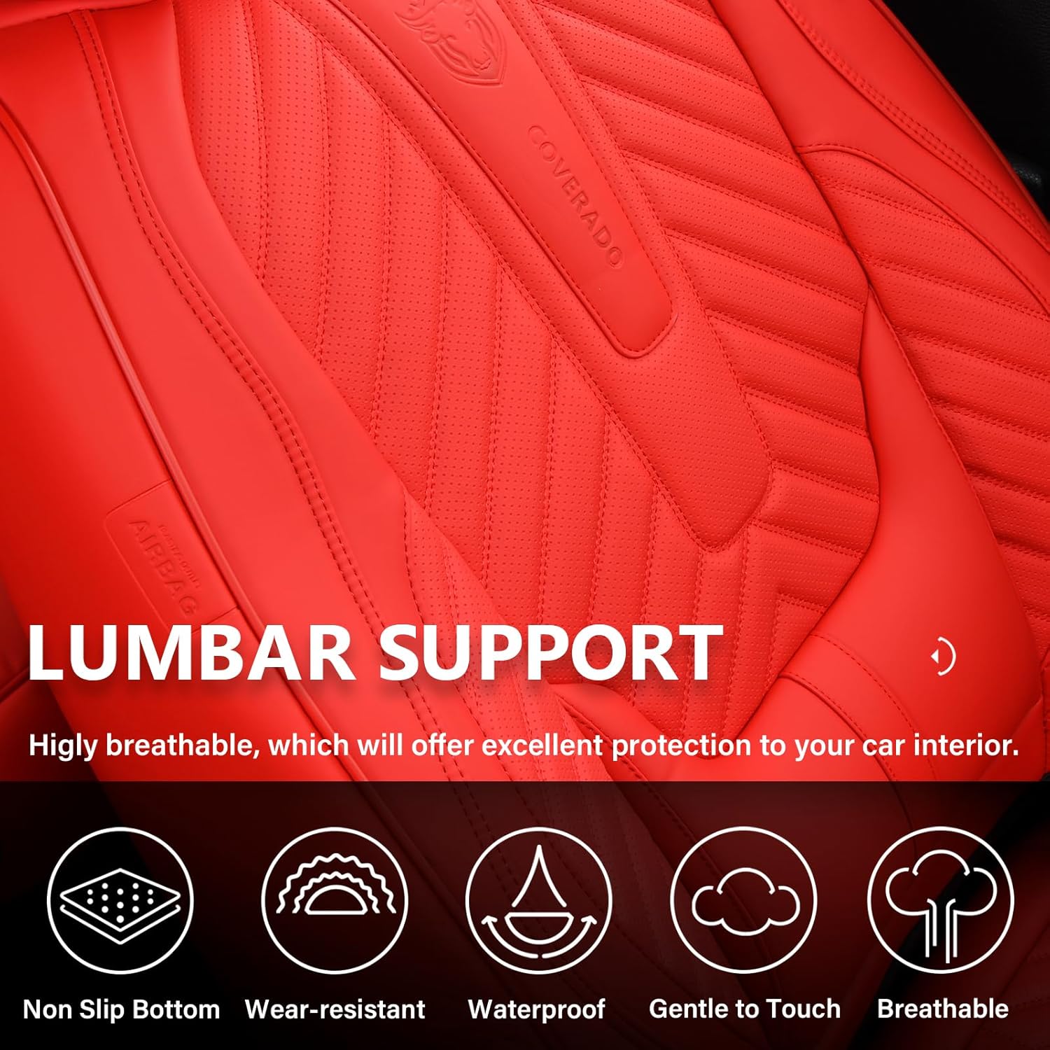 Coverado Car Seat Covers, Leatherette Seat Covers Full Set, Luxury Automotive Seat Covers Protector Cover Seat Universal Fit for Most Cars SUV Truck with Lumbar Support(Red)