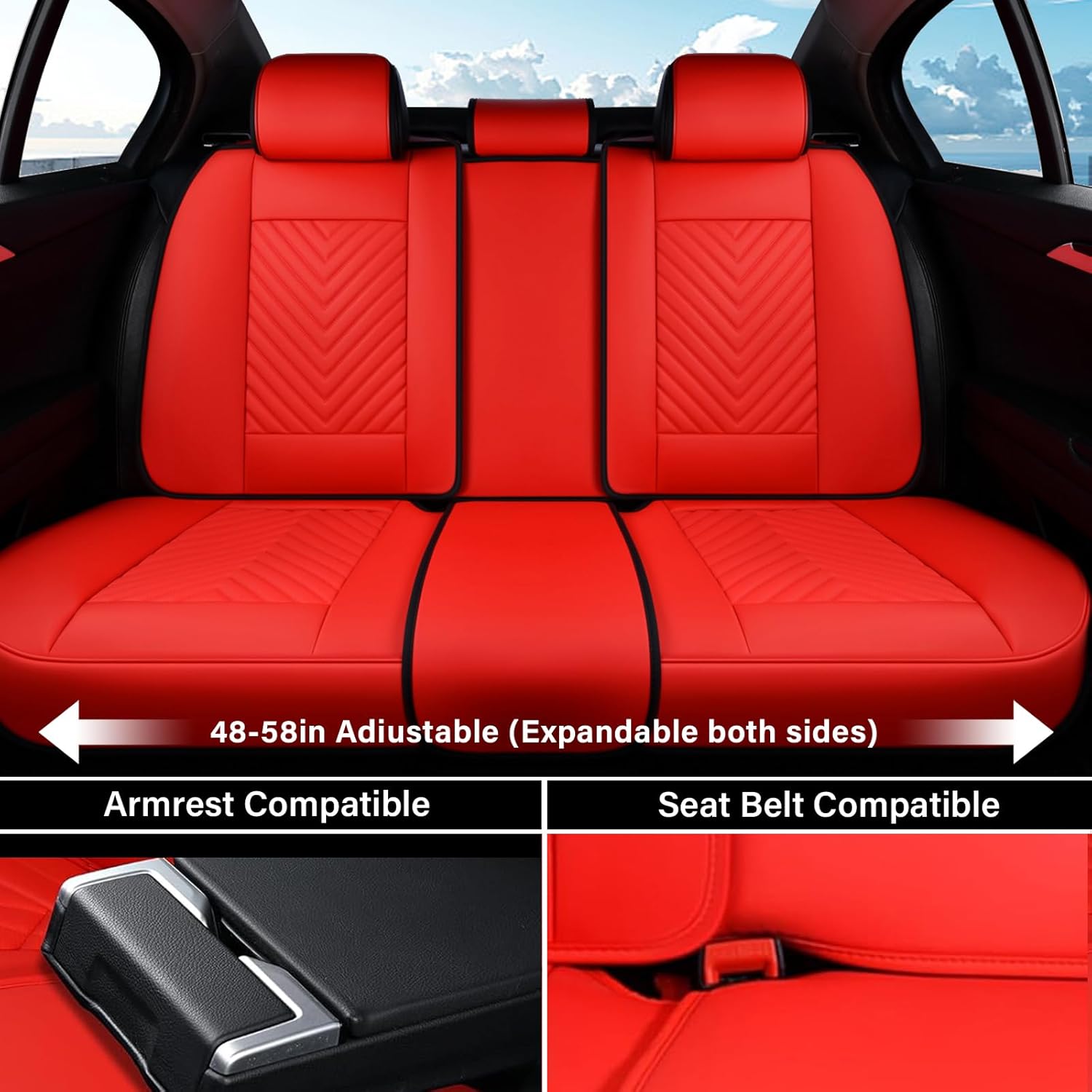 UNIVERSAL FIT: Car seat covers full set are precisely designed to perfectly fit the seats of various car models, ensuring easy installation and high fit. Rear seat covers adjust from 48 to 58 inches in length to fit most vehicles such as sedans, pickups, hatchbacks, suvs, crossovers, convertibles, vans, etc