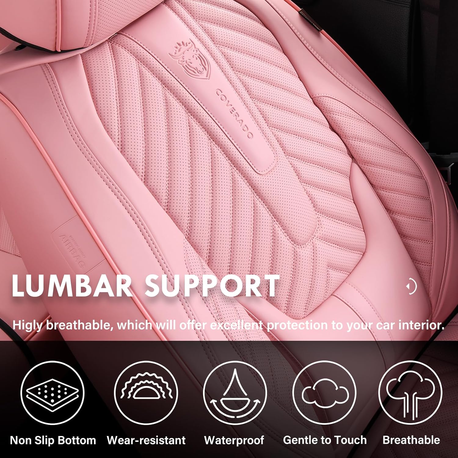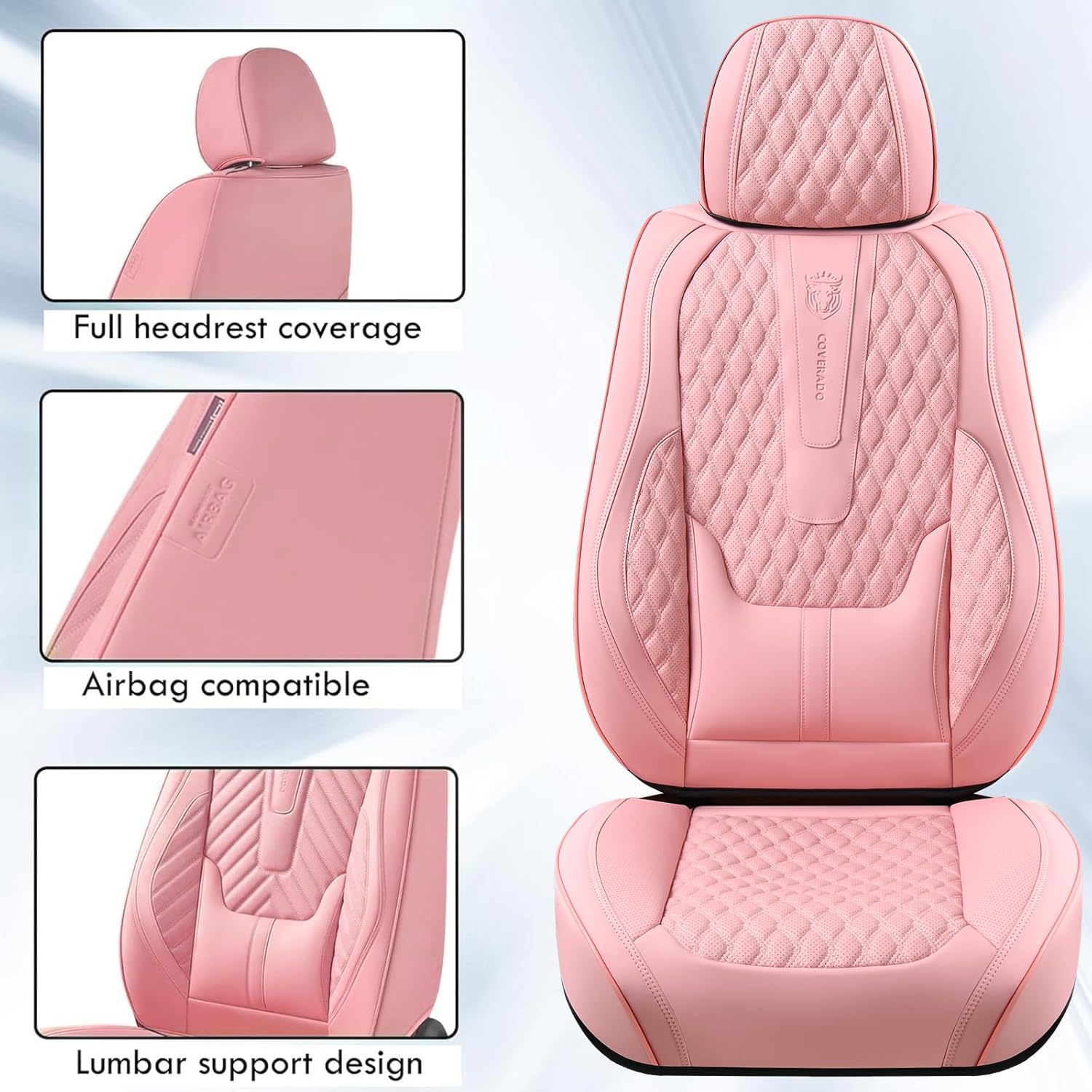 Coverado Seat Covers Front Seats, Car Seat Cover Protector with Lumbar Support, Waterproof Car Seat Cushion, Leather Seat Covers Carseat Cover Universal Fit for Most Cars(Pink)