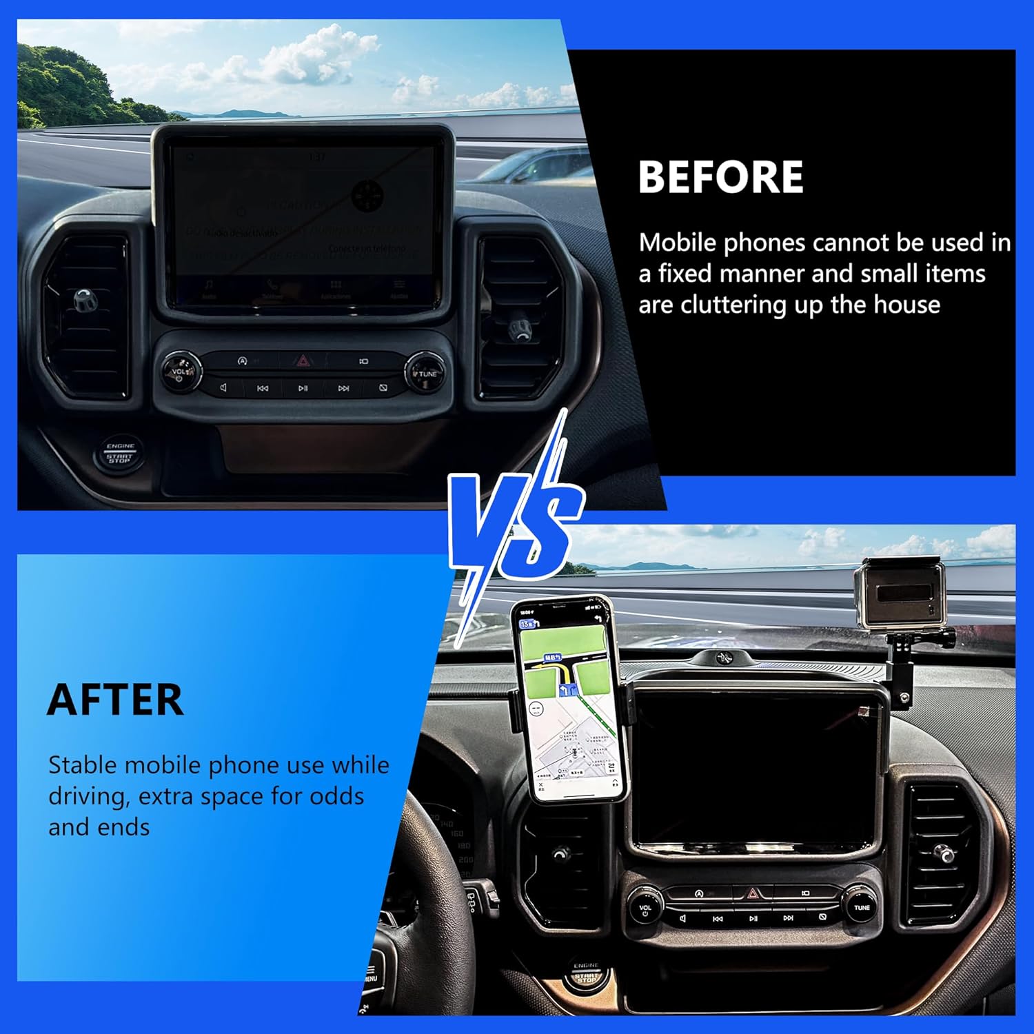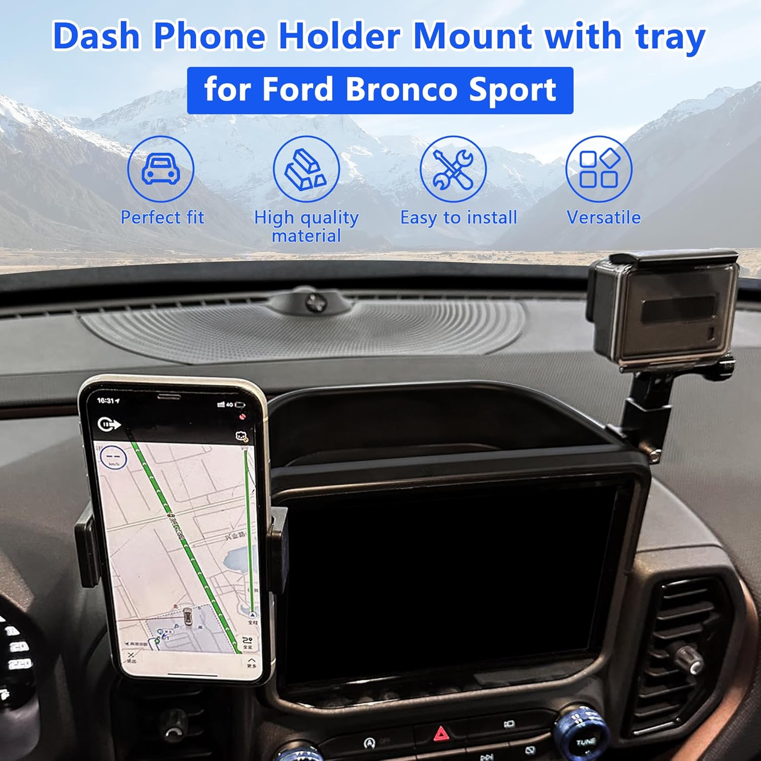 Dashboard Mobile Phone Holder with Center Console Organizer Storage Tray for Ford Bronco Sport 2021-2024 2025 2 Door 4 Door Internal Accessories, Cell Phone Holder & Camera Mount