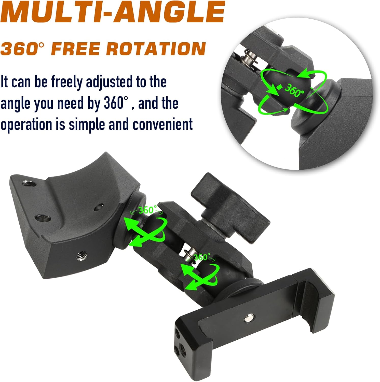 360-degree ball head rotation: