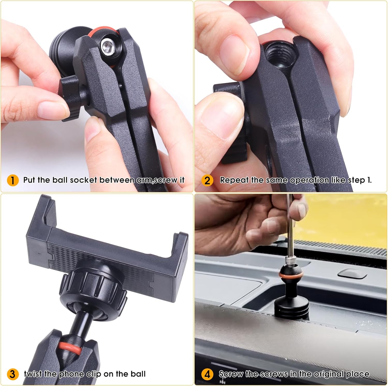 EASY TO INSTALL:You can install this dashboard phone mount within 3 minutes, just screw it in original car screw after assembling