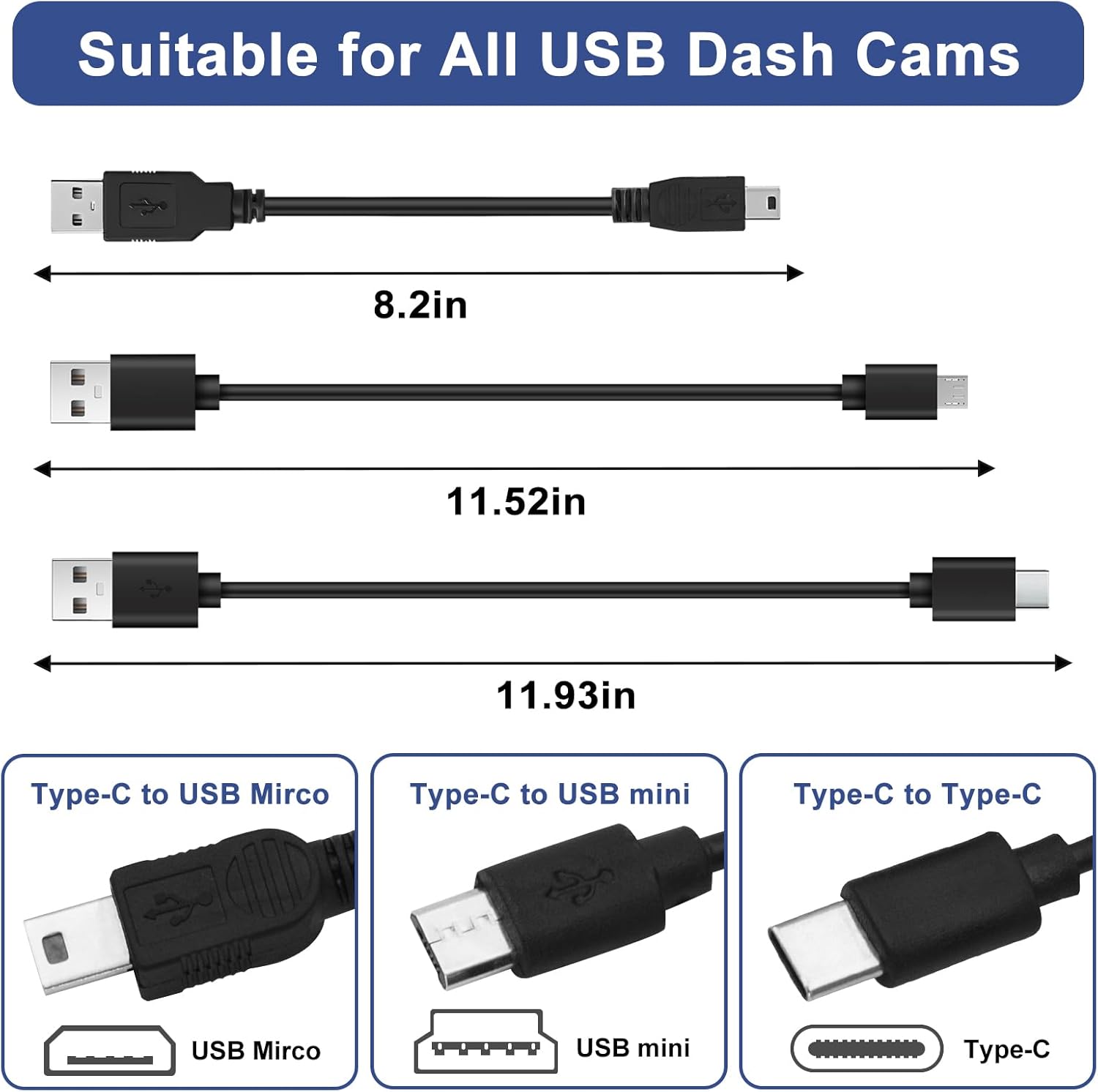 Multiple Output Options: The adapter is designed with three different output cables: Mini USB (5V), Micro USB (5V), and Type-C (5V). Suitable for various USB-powered devices including dash cams and radar detectors.
