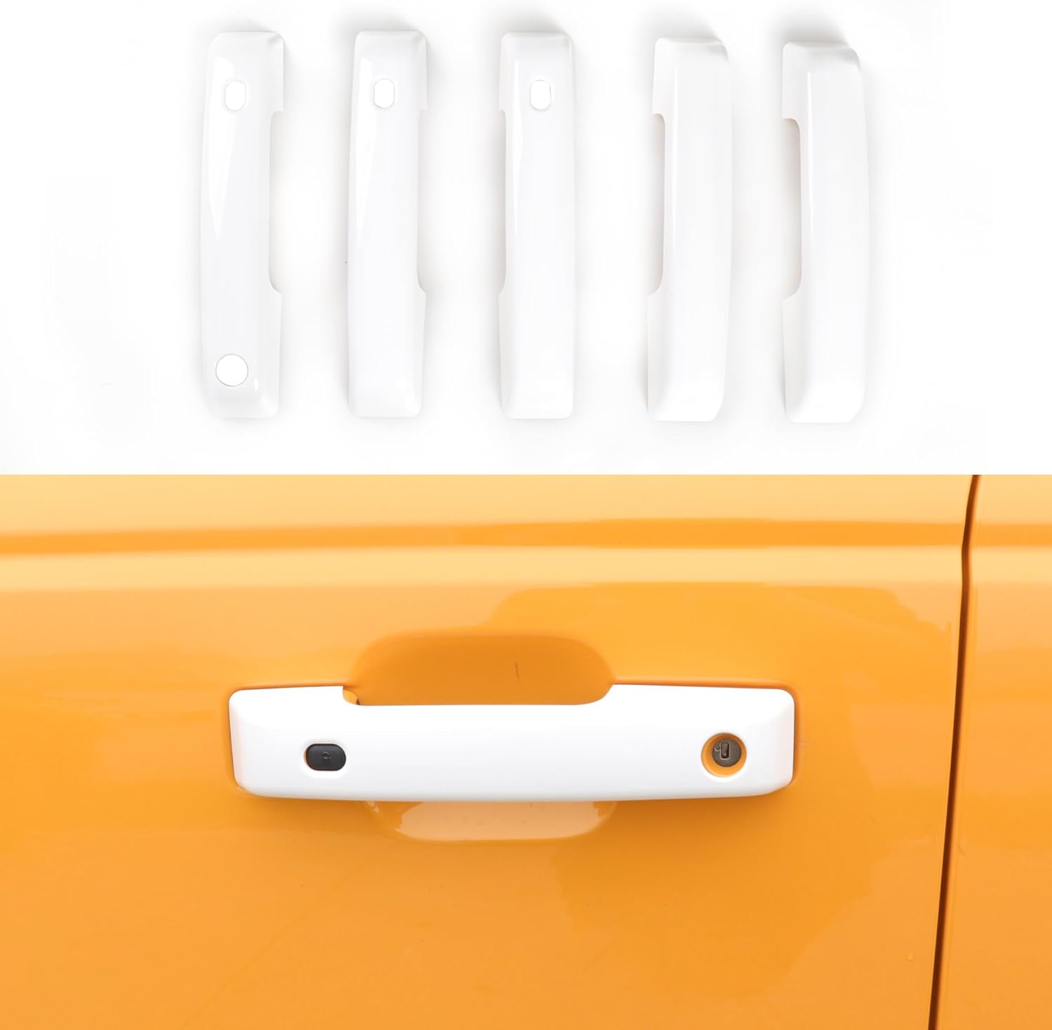 Door Handle Scratch Protector Rear Tailgate Door Handle Cover Trim Compatible with 2021 2022 2023 2024 2025 Ford Bronco Exterior Accessories Protection Decoration Decal 5P White With Smart Hole