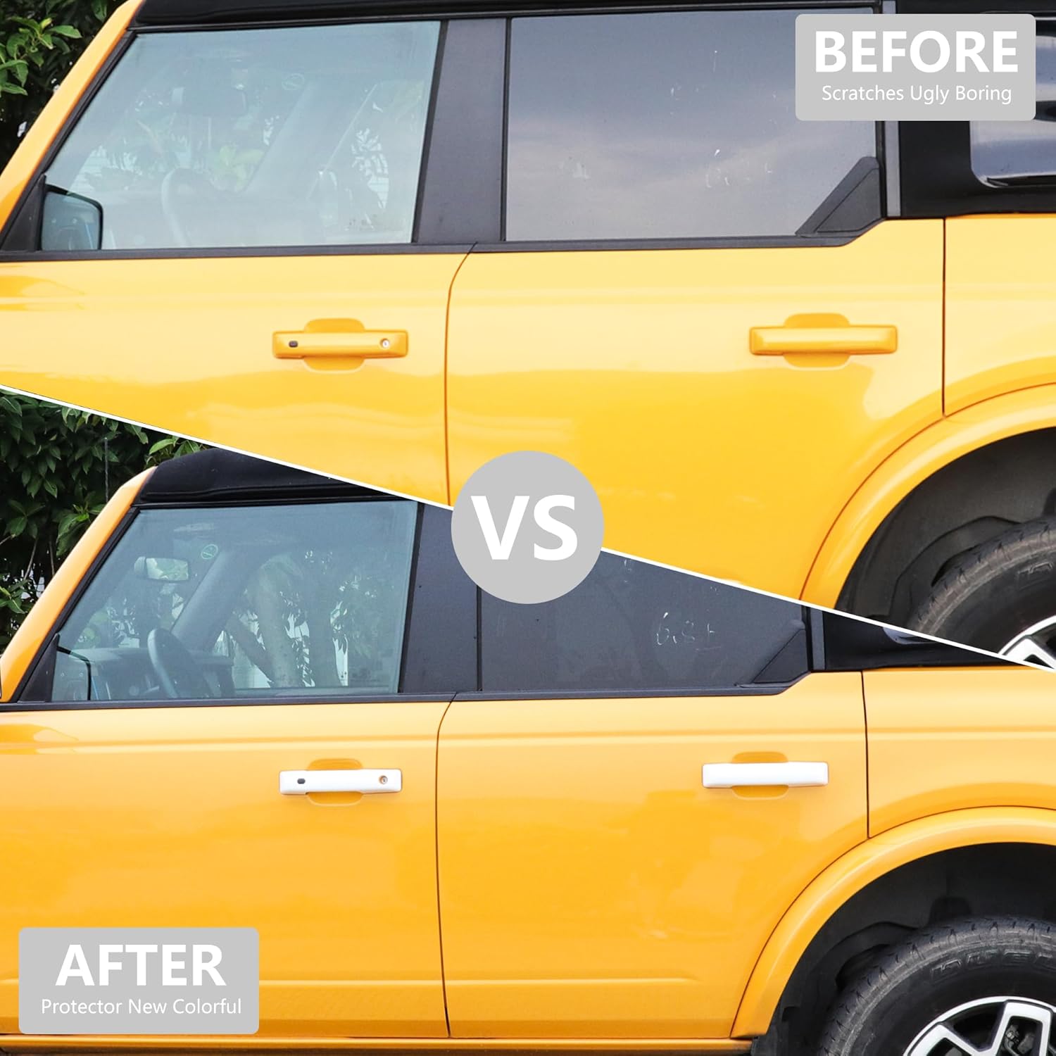 APPLICABLE CAR MODELS: Door handle scratch protector is compatible with 2021 2022 2023 2024 2025 Ford Bronco 2/4 Door with smart hole. CAUTION!!! NOT FOR BRONCO SPORT