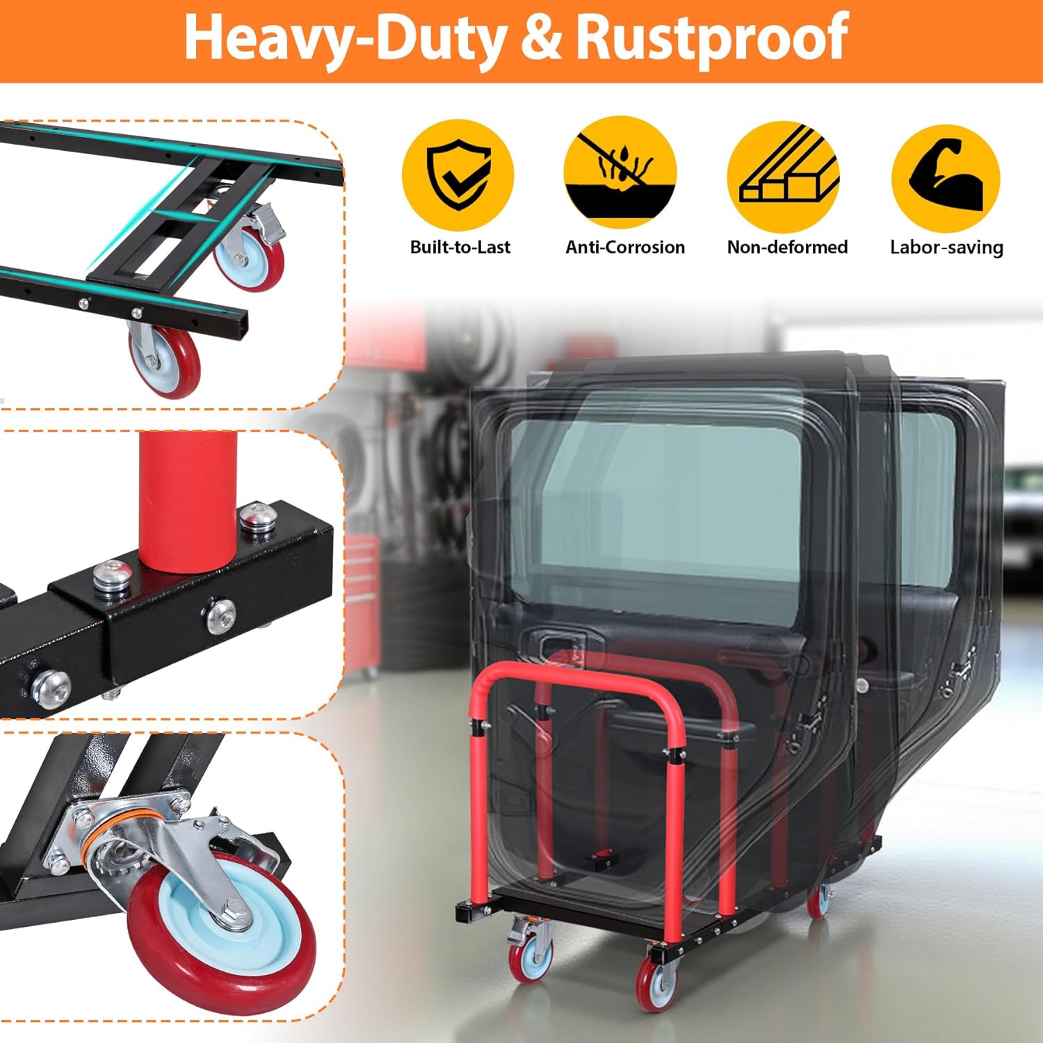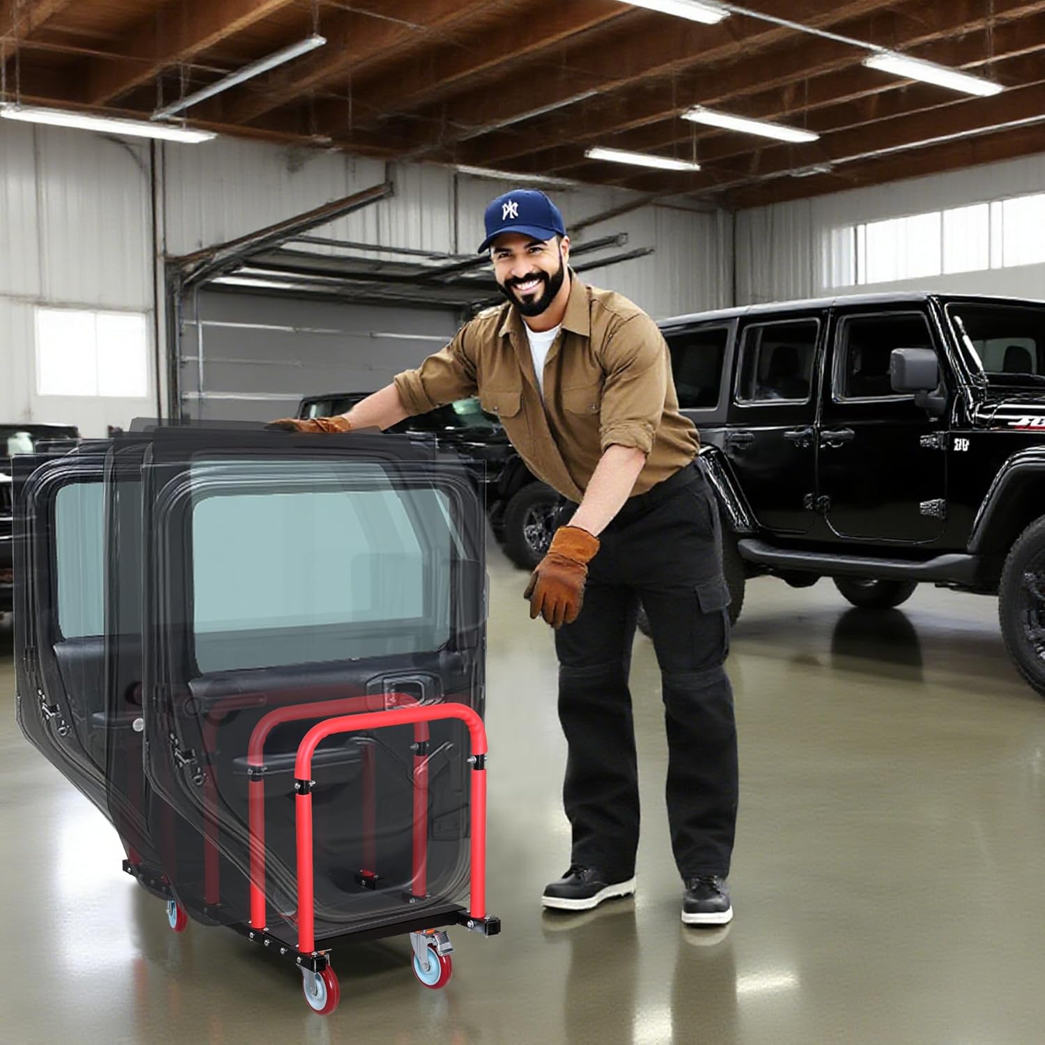 Door Holder, Storage Cart Hanger Rack with Sliding Bracket & 5″ Wheels, Heavy Duty Movable Stand Compatible with Jeep Wrangler JK JL Gladiator JT 2007-2024 & Ford Bronco 2/4 Door 2021-2024