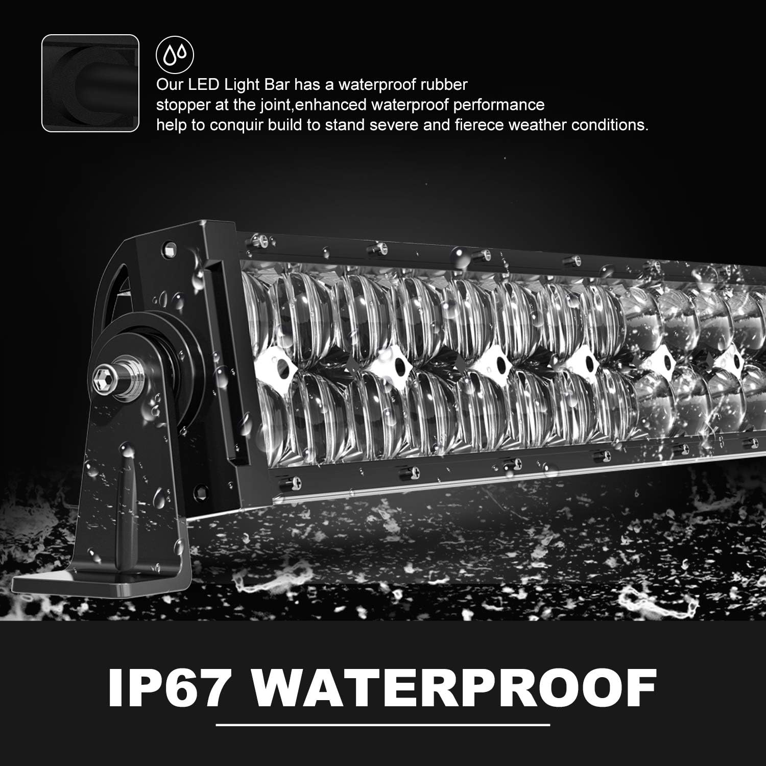 This LED light bar can work perfectly from -45°F to 85 °F. No matter snows or rains, you can use it in your excavator, Dozer, Road Roller, Crane, Tractor, Harvester, Grain Drill, Mower, Snowplow, Fire engine, Rescue Vehicle, Camping, Mining or Construction Lighting, etc.
