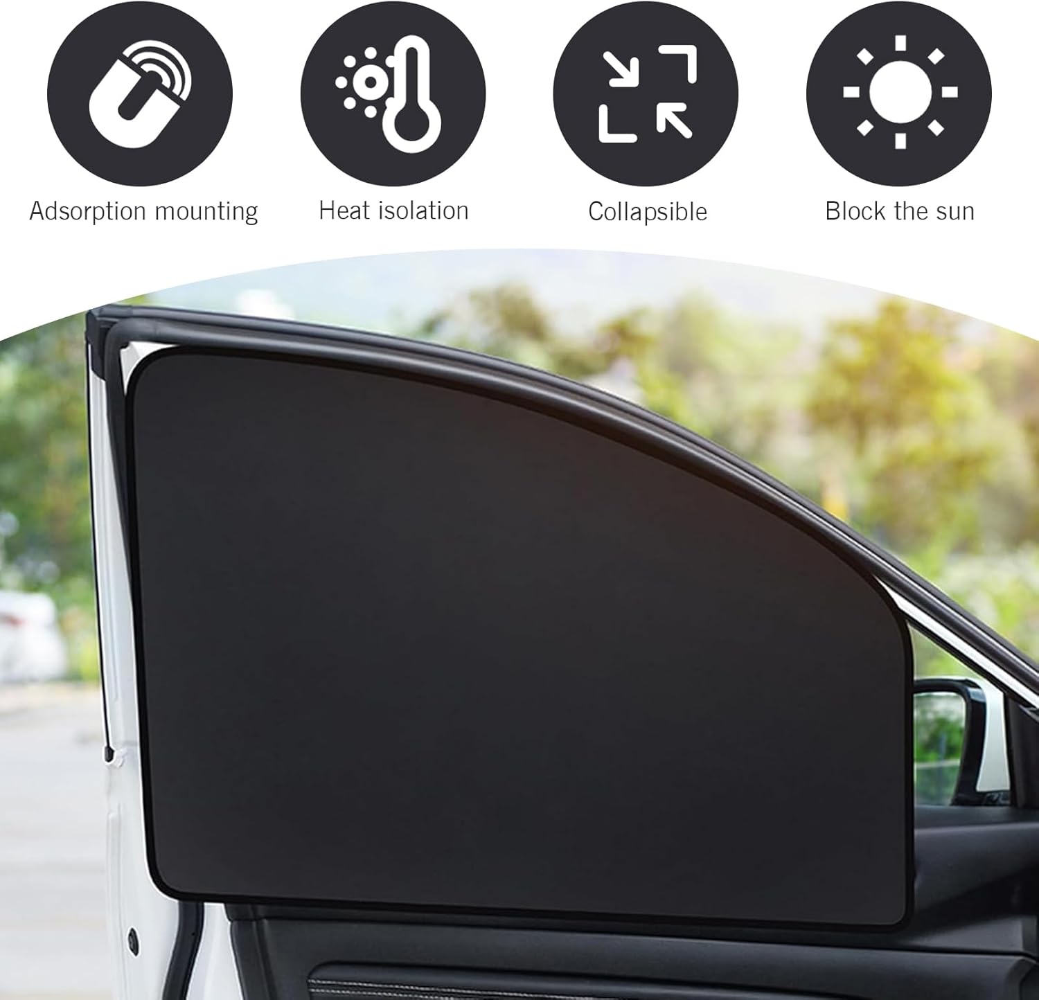 Convenience: This car front side window sunshade kit is designed for driving safety. It can create some privacy for rear passengers and is a must-have car accessory in summer. This car side window sunshade can be adjusted according to actual needs and has good flexibility.