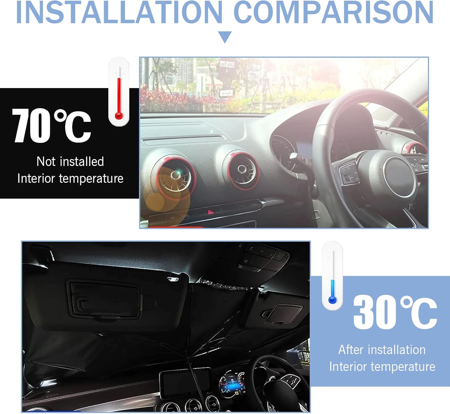 Easy to Carry: Easy to store (with storage bag) in the door, central control and glove box. Quick Installation, just like an umbrella, our sunshade is easy to install and fold in seconds.