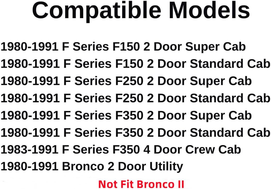 Compatible Models: 1980-1991 Bronco (Not For Bronco II) , 1980-1991 F150, 1980-1991 F250, 1980-1991 F350