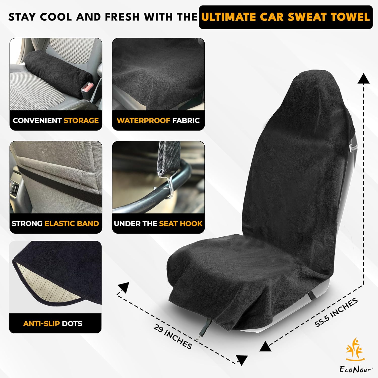 EcoNour Sweat Towel Car Seat Cover with Belt Shoulder Pad | Washable Car Seat Protector from Sweat, Food, Dirt, Gym, Swimming, Workout | Waterproof Universal Seat Cover for Car, Truck, Van & SUV