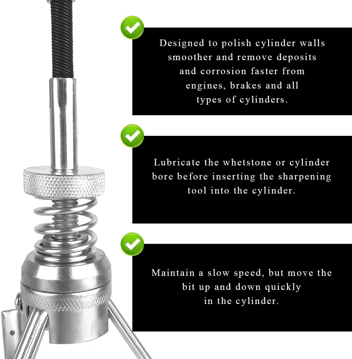 【Great Function】: The cylinder honing tool is ideal for de-glazing the cylinder walls of gasoline and diesel engines. It removes burrs and helps to remove carbon and rust buildup. It also properly roughens the cylinder walls to create a cross-grain pattern that retains oil and provides adequate sealing. In addition to this, the flexible shaft and tensioning control tensioning nut allow for faster cutting and improved maneuverability.