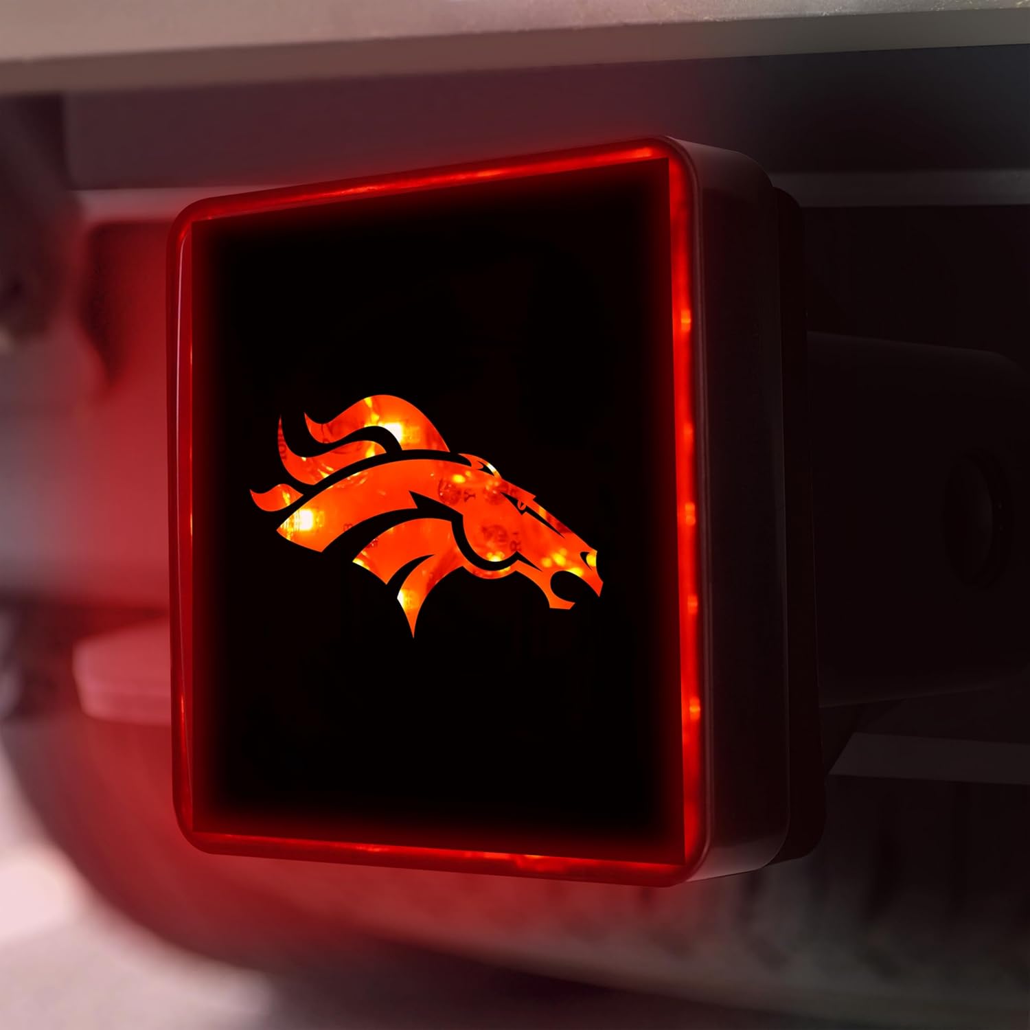 FANMATS NFL – Denver Broncos Light Up Hitch Cover | Black | Fits All 2 in. Class III hitches | Bronco Head Primary Logo