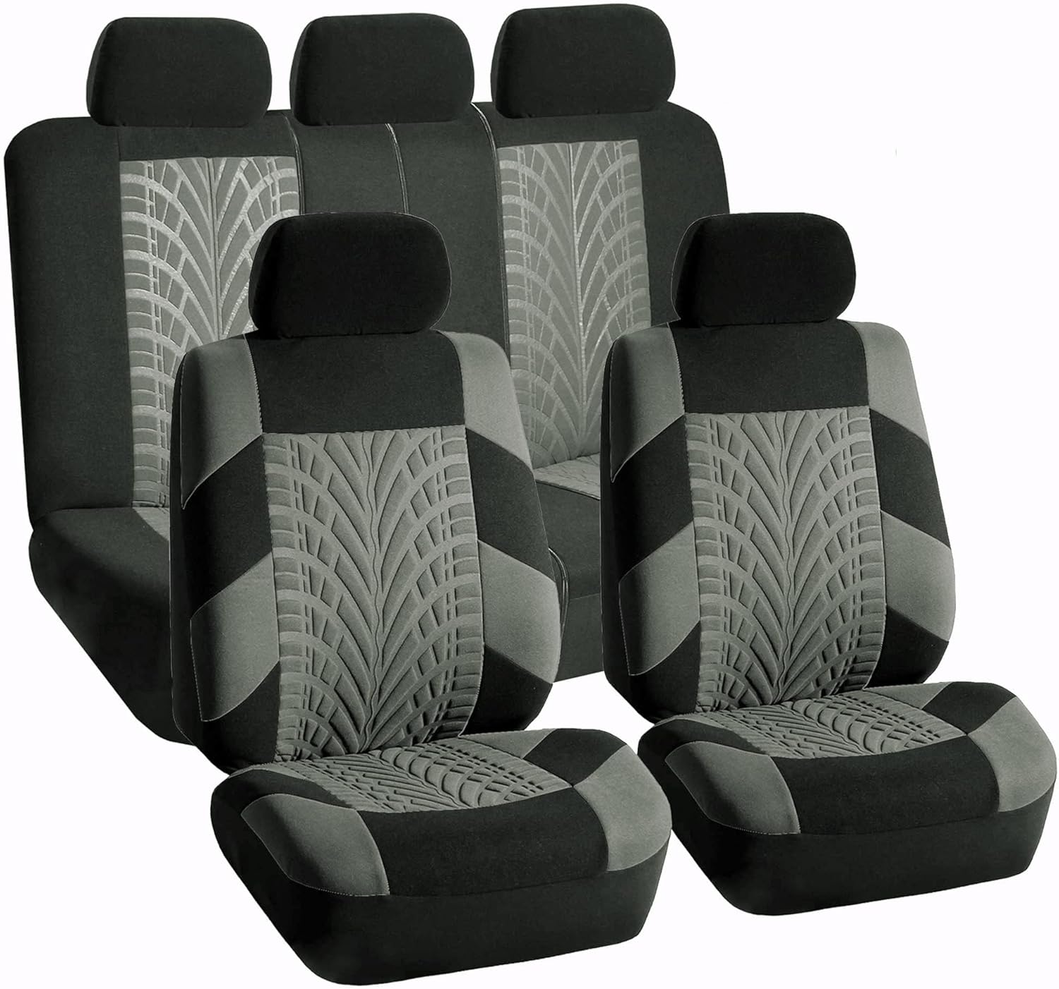 FH Group Car Seat Covers Full Set Gray Premium Cloth – Universal Fit, Automotive Low Back Front Seat Covers, Airbag Compatible, Split Bench Rear Seat, Washable, for SUV, Sedan