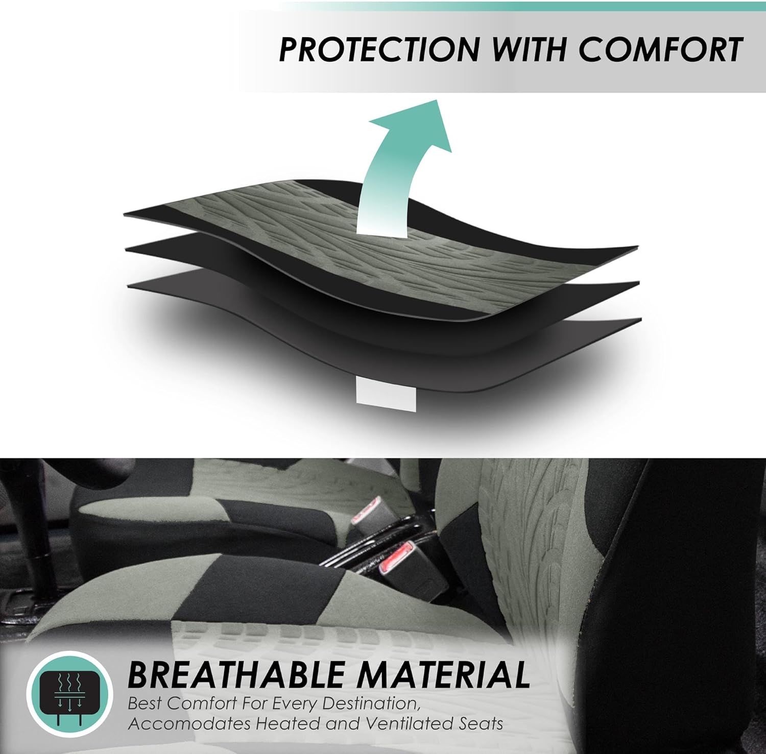 🚘[COMPATIBLE WITH HEATED SEATS] Our front car seat covers are engineered to accommodate traditional and heated seats so that you can obtain the best comfort during cold winter days. Concealed hook and loop opening and adjustable straps make installation, removal, and reattachment a breeze
