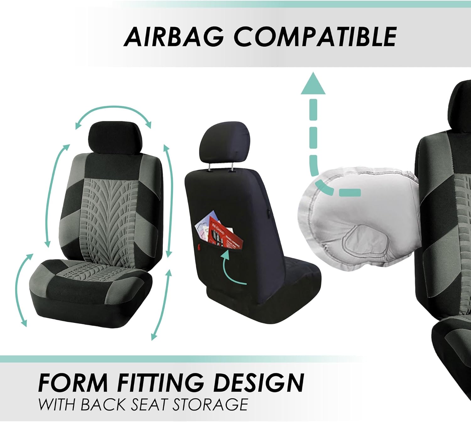FH Group got you covered! Our premium cloth car seat covers not only provide the best protection for your car’s upholstery against any type of mess but they also enhance the looks of your car’s interior. No need to worry anymore about spills, stains, mud, or anything damaging your original car seats because this car seat protector got your back. Every car seat cover we make is built with high-quality, durable materials that will protect your car’s upholstery at all times. We offer automotive seat covers in numerous fabrics, colors, and designs, so you can easily find the seat cover for cars that fits your style the most. We have car seat covers for women, for men and for everyone. Our auto seat covers are compatible with most sedans, SUVs, and vans’ front seats thanks to the universal low back seat cover design that delivers the snug fit you’re looking for, only if the front seats’ headrest is removable. Also, because safety is one of our main goals, this front set of cover for car seats is airbag compatible (officially tested!). We understand messes happen, that’s why these waterproof seat covers for cars are convenient for any type of driver. FH Group car seat covers are a great car interior accessory for your vehicle. We have it all: car seat covers for SUV, car seat covers for autos, car seat covers for vans, you name it!
