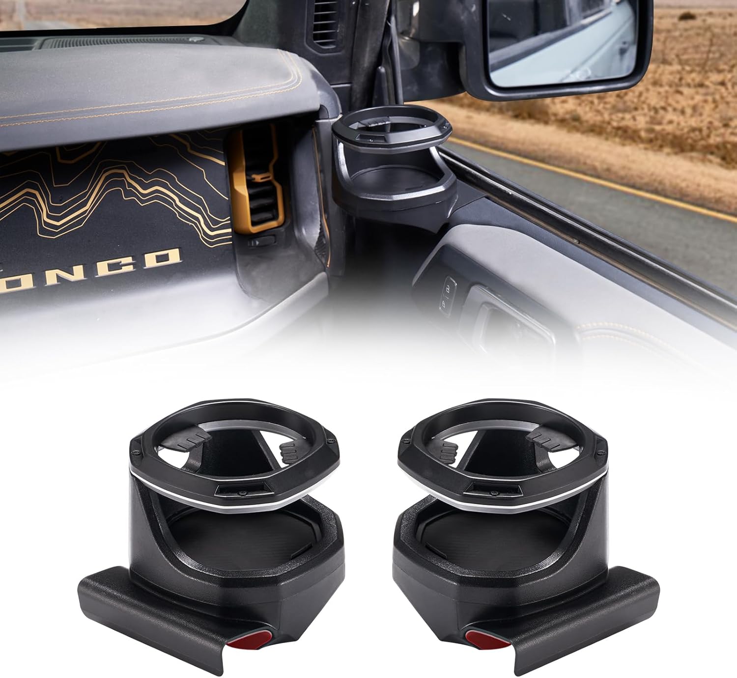 FieryRed Car Window Cup Holders for 2021 2022 2023 2024 Ford Bronco, 1 Pair Door Cup Holders Vehicle Drink Holders, Driver and Passenger Side, Not Fits Bronco Sport