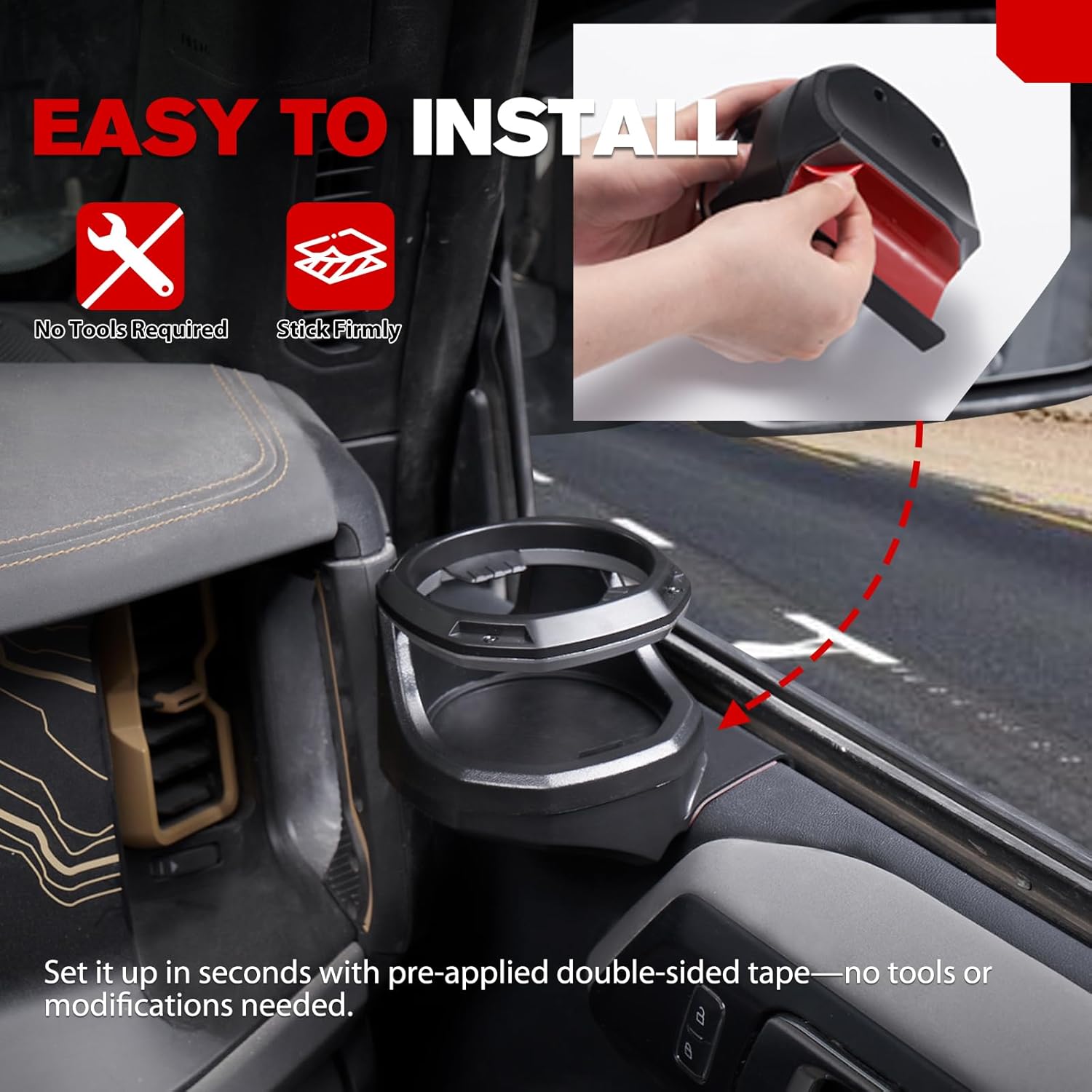 INSTALLATION: Requires no tools or modifications to your vehicle’s interior. Set it up in seconds with pre-applied double-sided tape, just peel, stick, and slide it into place for an instant upgrade that respects your Ford Bronco’s original build.