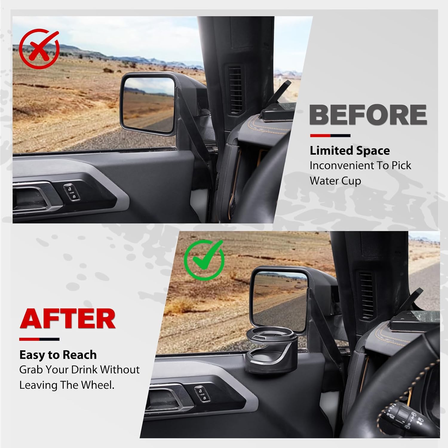 BUILT TO LAST: Constructed from heavy-duty ABS plastic, they’re heat-resistant, dustproof, and tough enough to handle the demands of the trail. With a weight capacity up to 30 oz, they’re more than ready for oversized bottles or rugged road trips. From highway commutes to mountain trails, your favorite drink is always within easy reach.