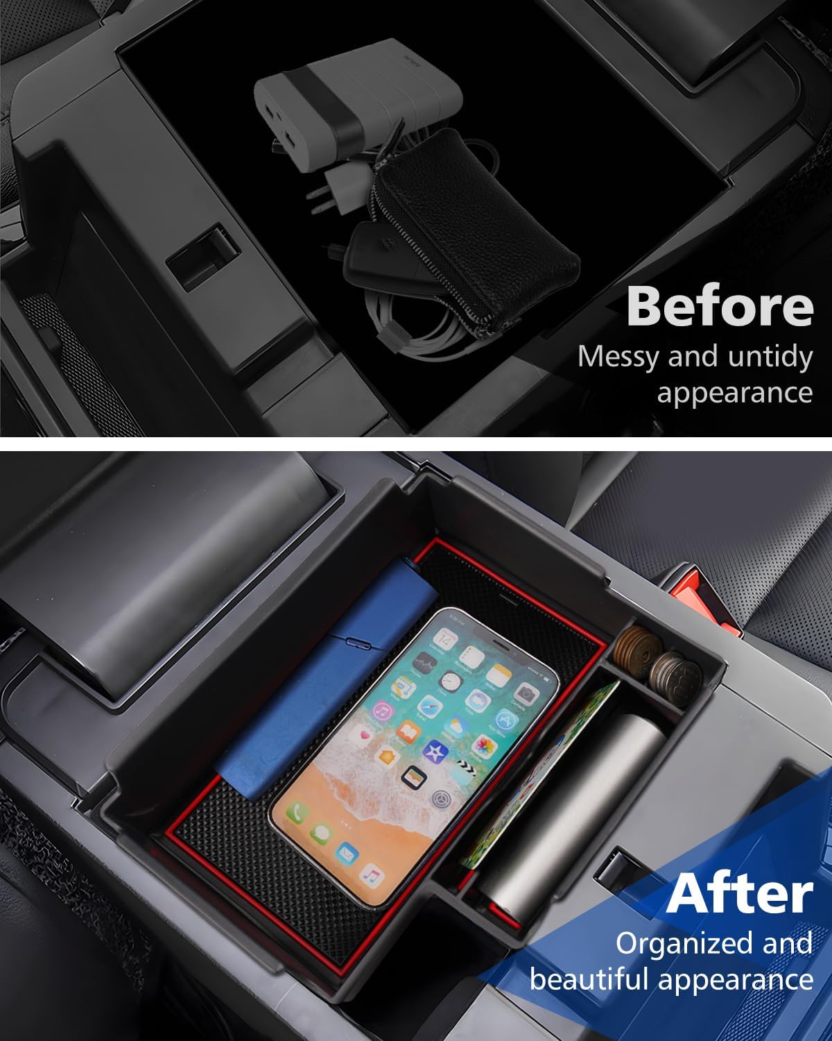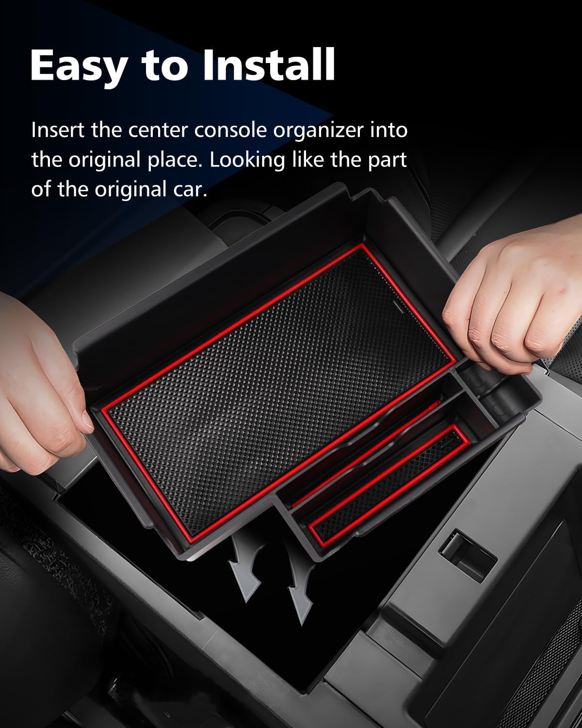 Install in Seconds: Just insert the center console organizer into the original place. And the armrest storage tray does not affect the function of the original armrest box.