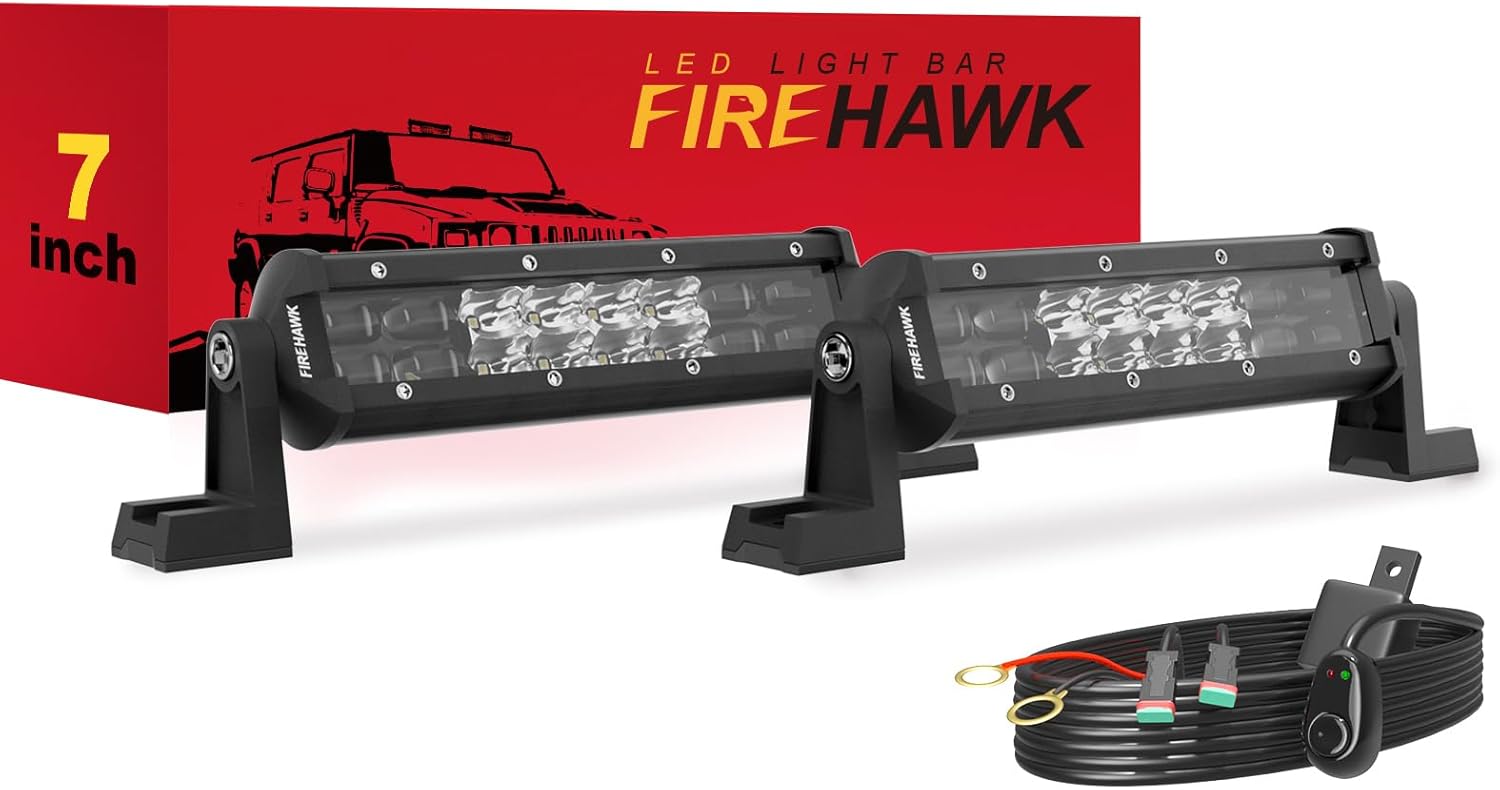 Firehawk LED Light Bar 7 Inch 40,000LM 2PCS, 2025 New Japanese Chips, Spot Flood Combo Beam, Driving Off Road Fog Work for Truck Pickup ATV UTV SUV Cart IP68 Waterproof with 12V Wiring Harness kit