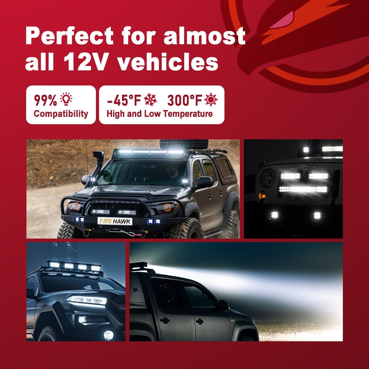 【99% Compatibility】 Perfect for almost all 12V off road vehicles, such as Truck Pickup Car ATV UTV SUV Cart Tractor or any other vehicle that needs much brighter lighting at night