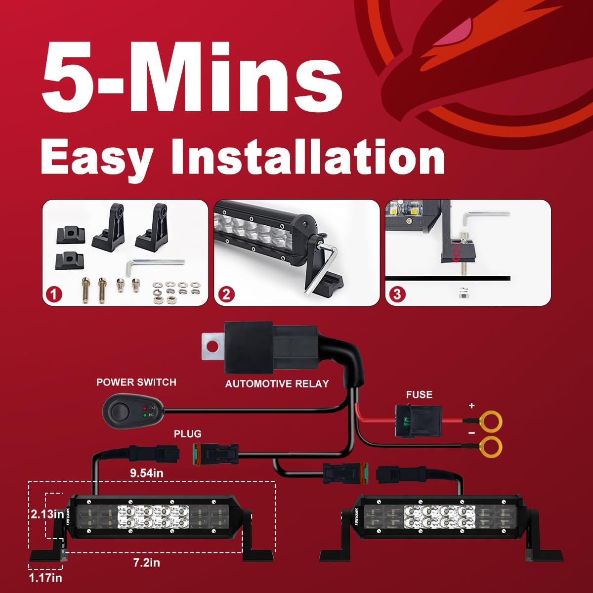 【What You Get】 2PCS 7 Inch LED light bar, 1PC 12V wiring harness kit-2 leads, adjustable bracket, installation guide. Join the 5 million+ powered by our leading technology