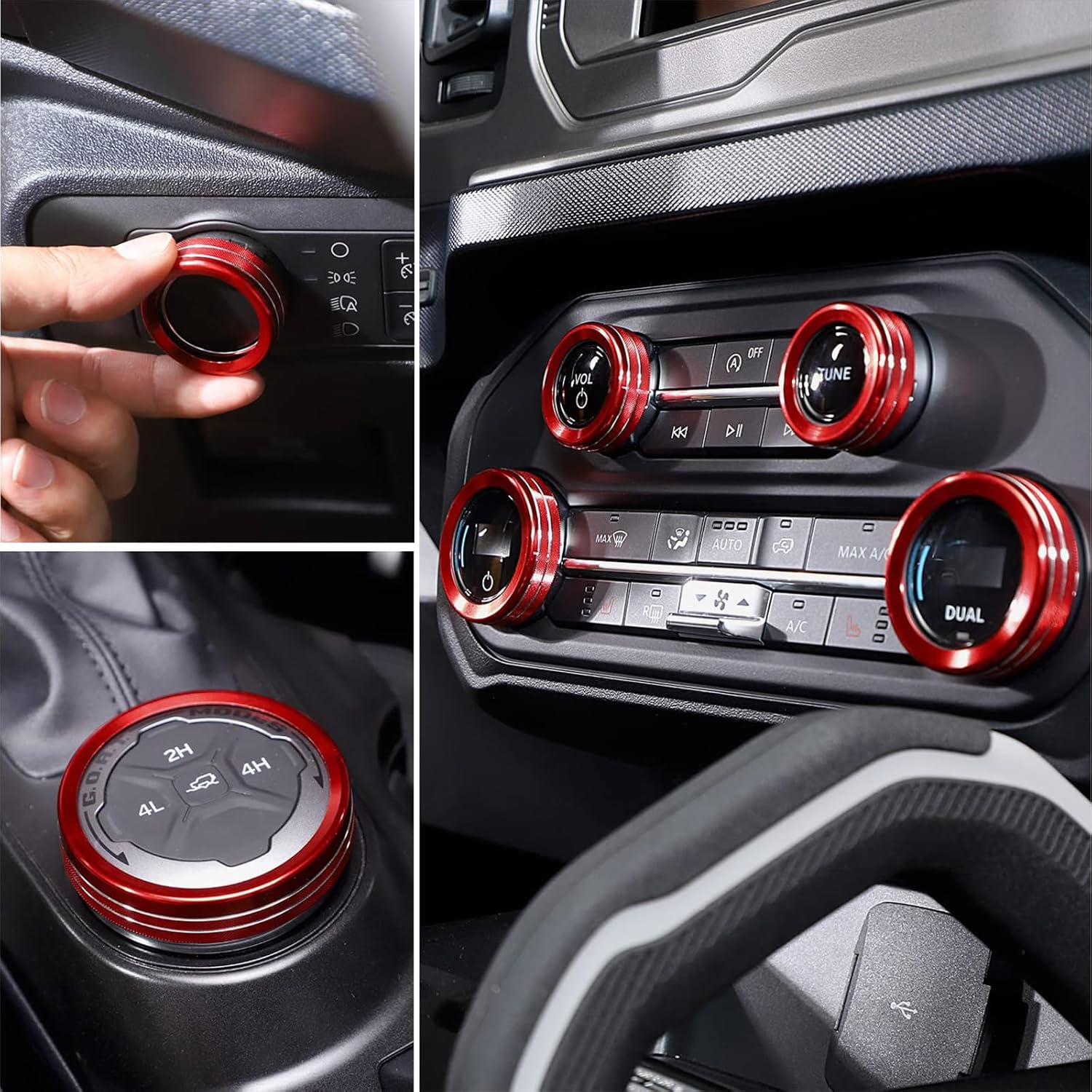 Fit Air Conditioner Headlight Switch Knob 4WD Wheel Drive Trailer Gear Switch Knob Cover for Ford Bronco 2021 2022 2023+ Car Trim Accessories Aluminum Alloy 6PCS Red(Not fit Bronco Sport)