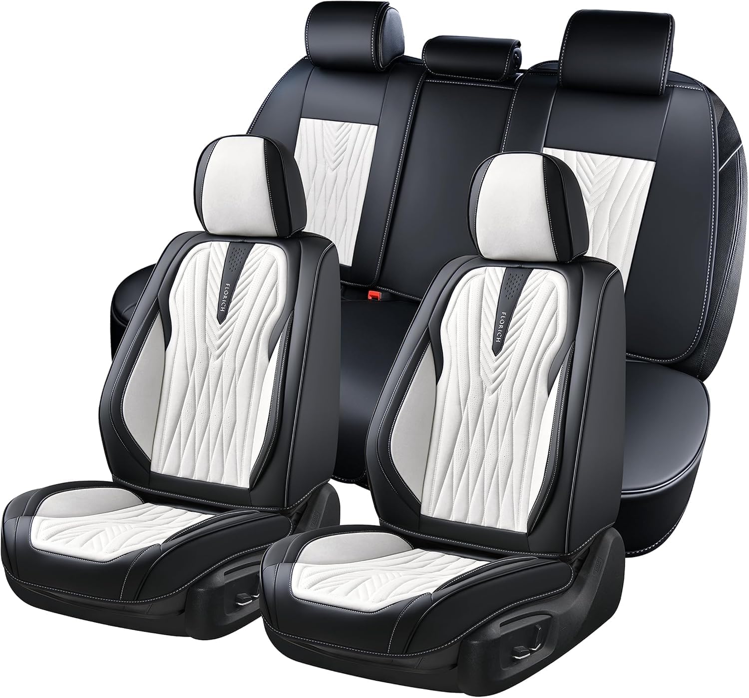 FLORICH Car Seat Covers Full Set, Leather Seat Covers for Cars 5 Seats, Waterproof Car Seat Protector,Automotive Seat Covers & Accessories Fit for SUV Sedan Truck-Black&White